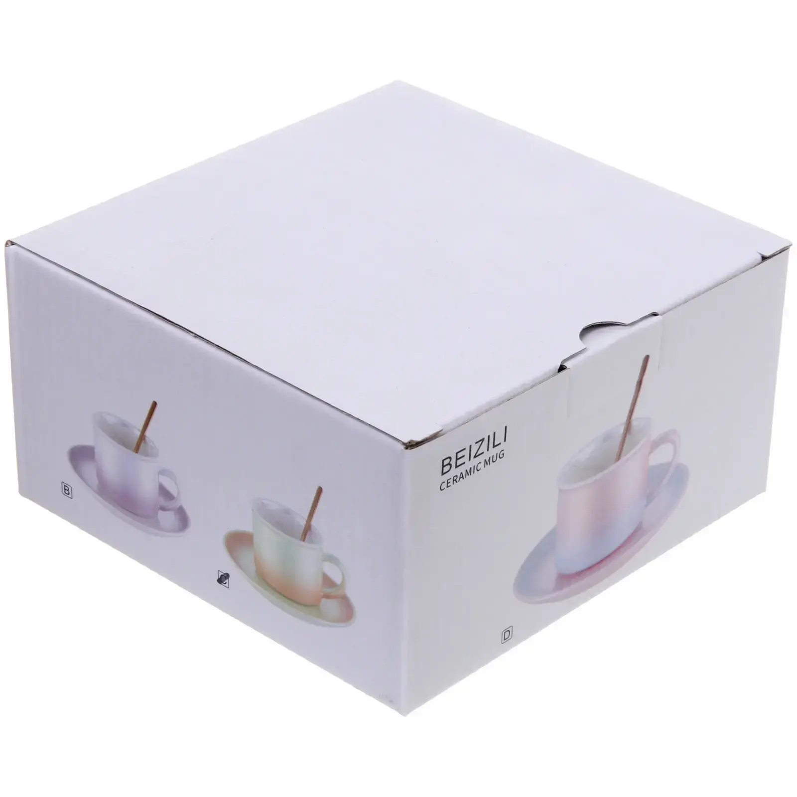 Кружка имеет стандартные размеры, что делает её универсальной для любых напитков. Блюдце диаметром около 13-14 см и ложка с длинной ручкой идеально дополняют комплект. Чайная пара «Северное сияние» станет отличным подарком для ваших близких или прекрасным дополнением к вашей кухонной посуде.