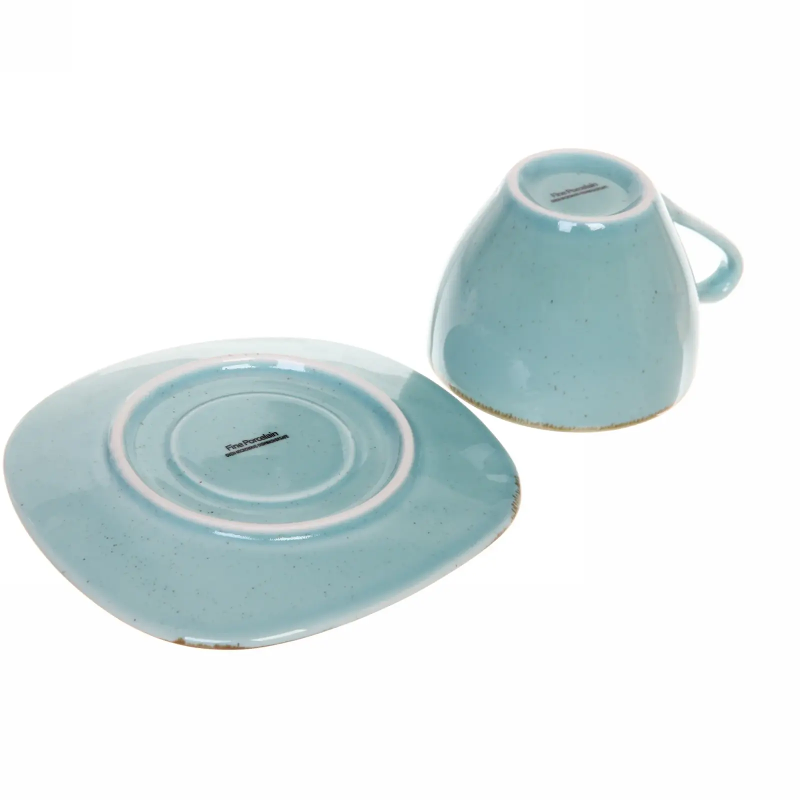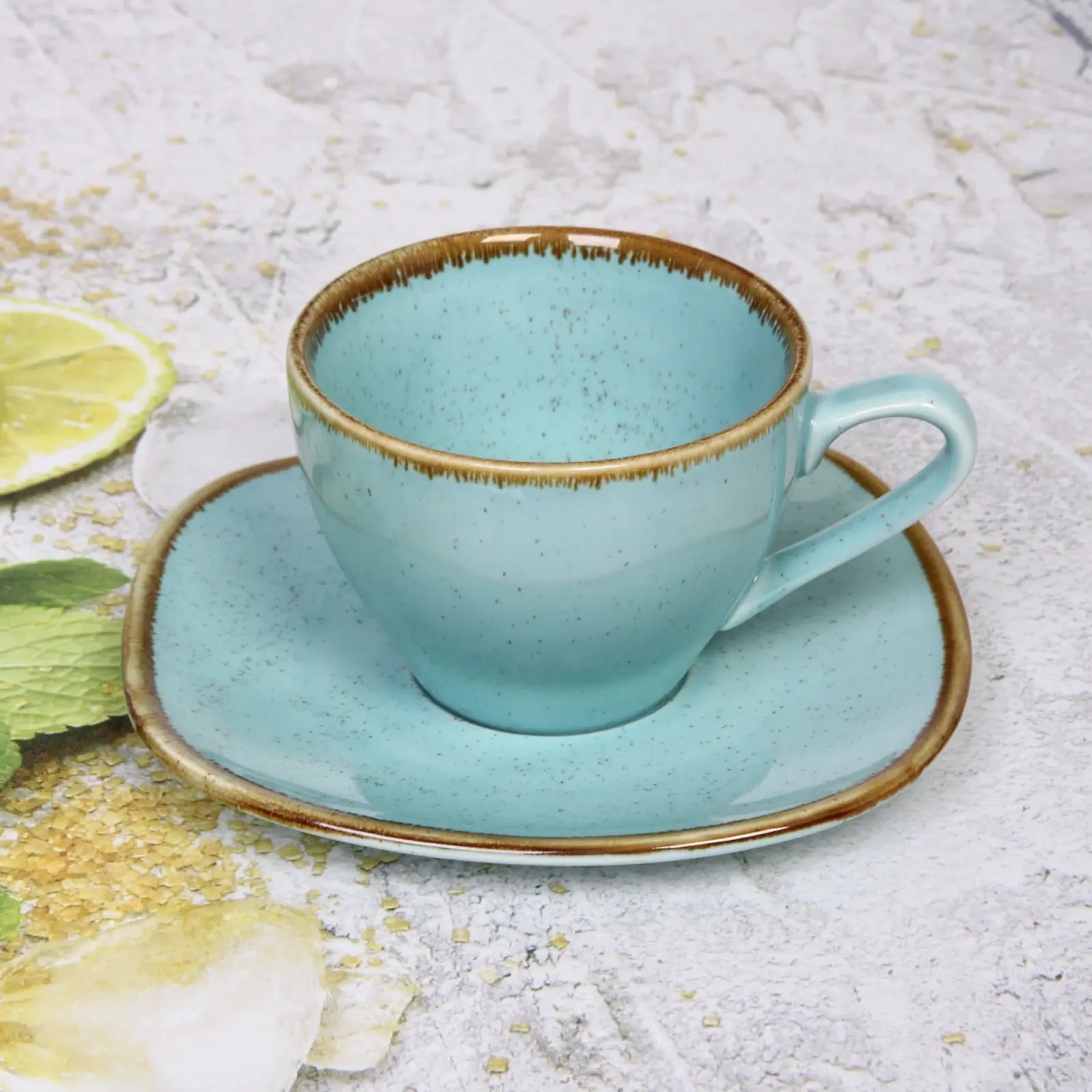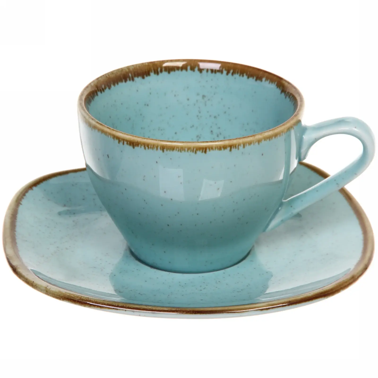 Чайная пара 'Tiffany Blue', кружка 220мл+блюдце, керамика, голубой/коричневый