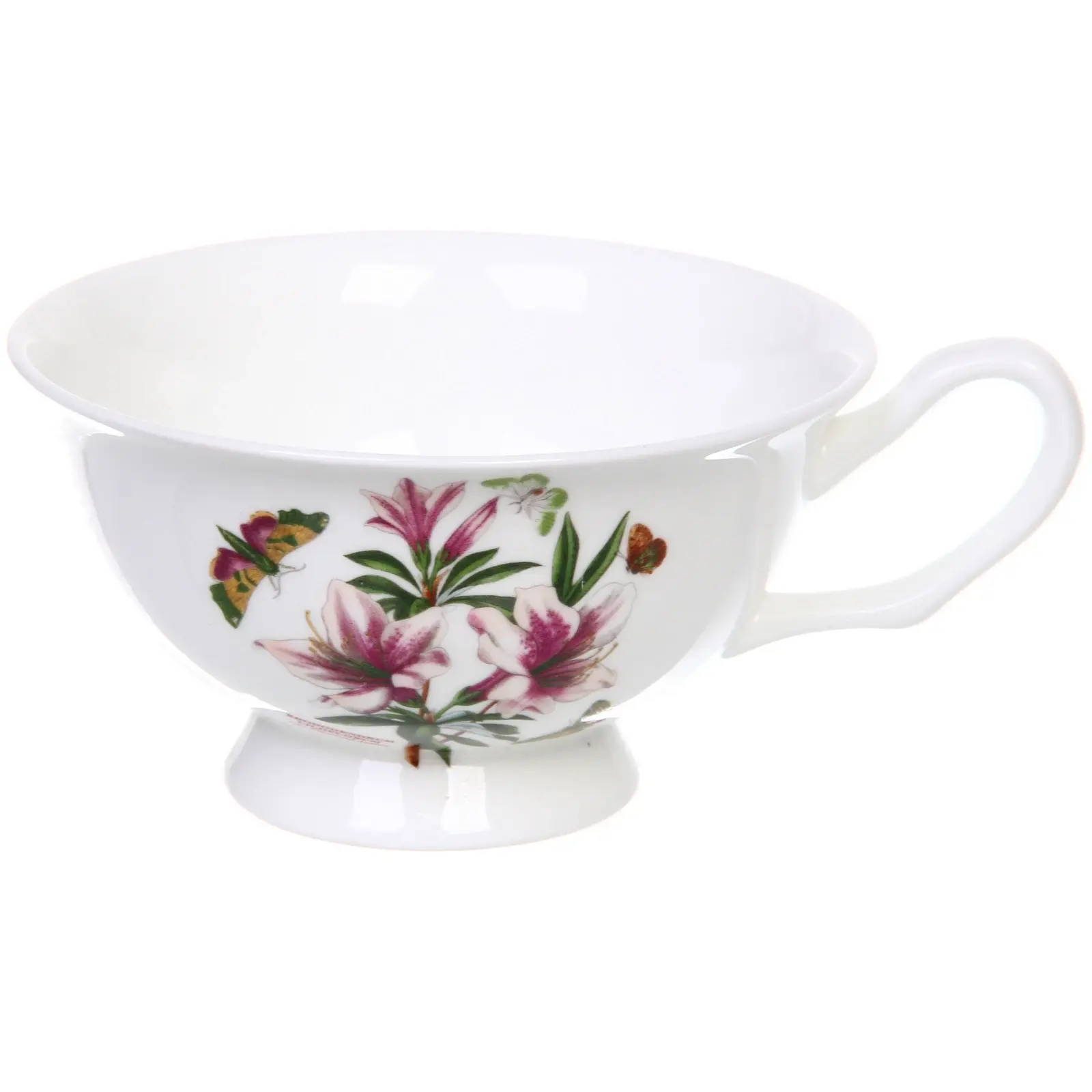 Керамическая чайная пара «Цветочная грация» 220мл, белая с розовыми цветами и бабочками