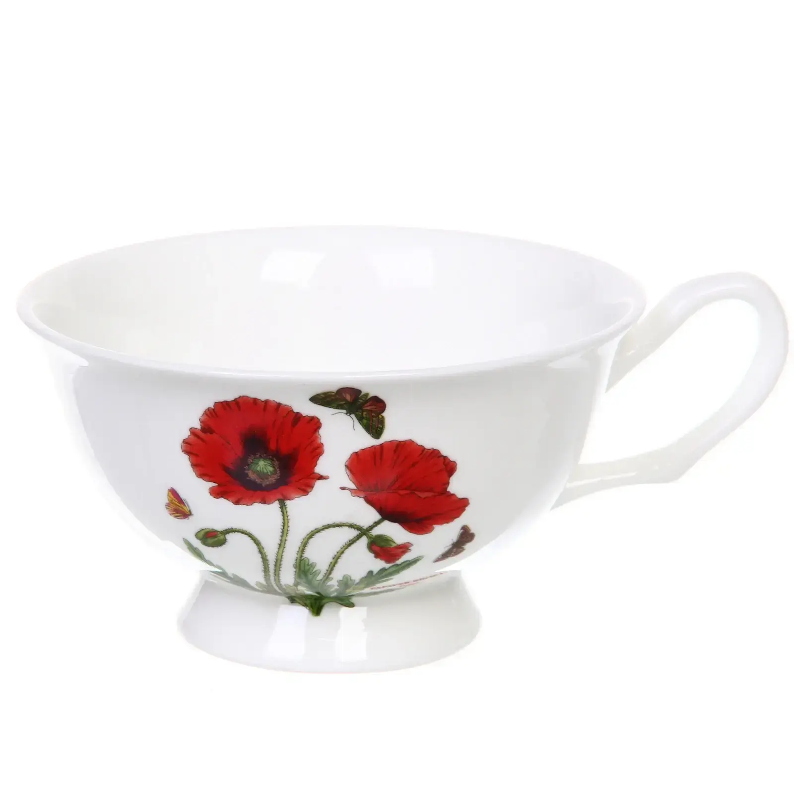Подарите своему чаепитию нотку изысканности: керамическая чашка 220 мл с живой иллюстрацией красных мака и бабочек сочетает в себе лёгкость дизайна и практичность.