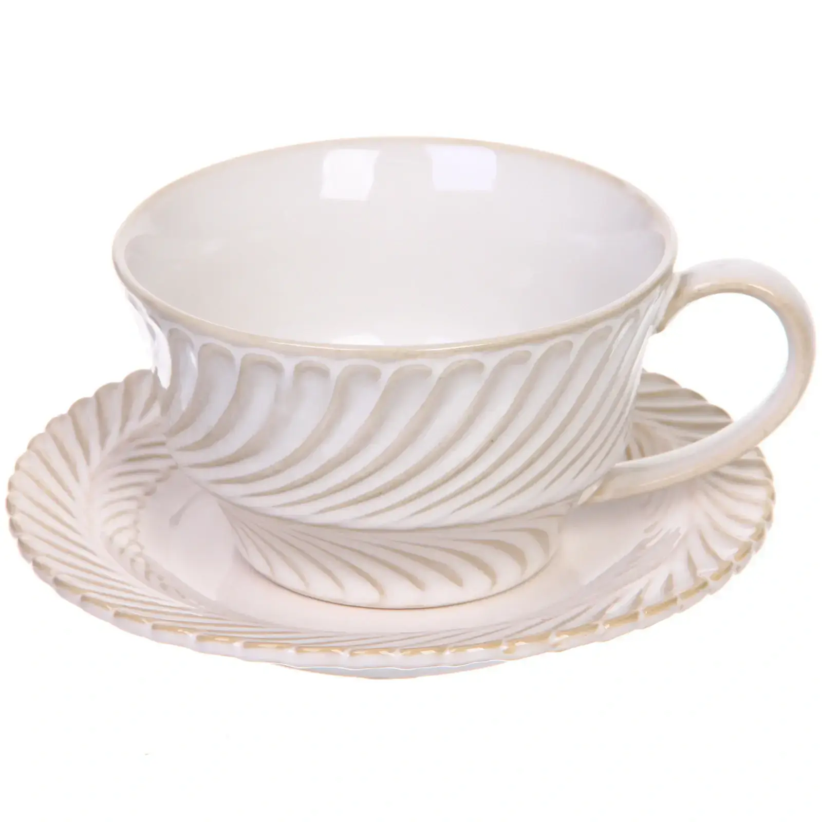 Чайная пара «Верона» подходит для повседневного использования, а также для особых случаев. Благодаря удобной ручке чашки, вы сможете наслаждаться любимыми напитками без лишних усилий. Рельефный дизайн не только привлекает внимание, но и обеспечивает надежный захват, что делает её удобной в использовании.
