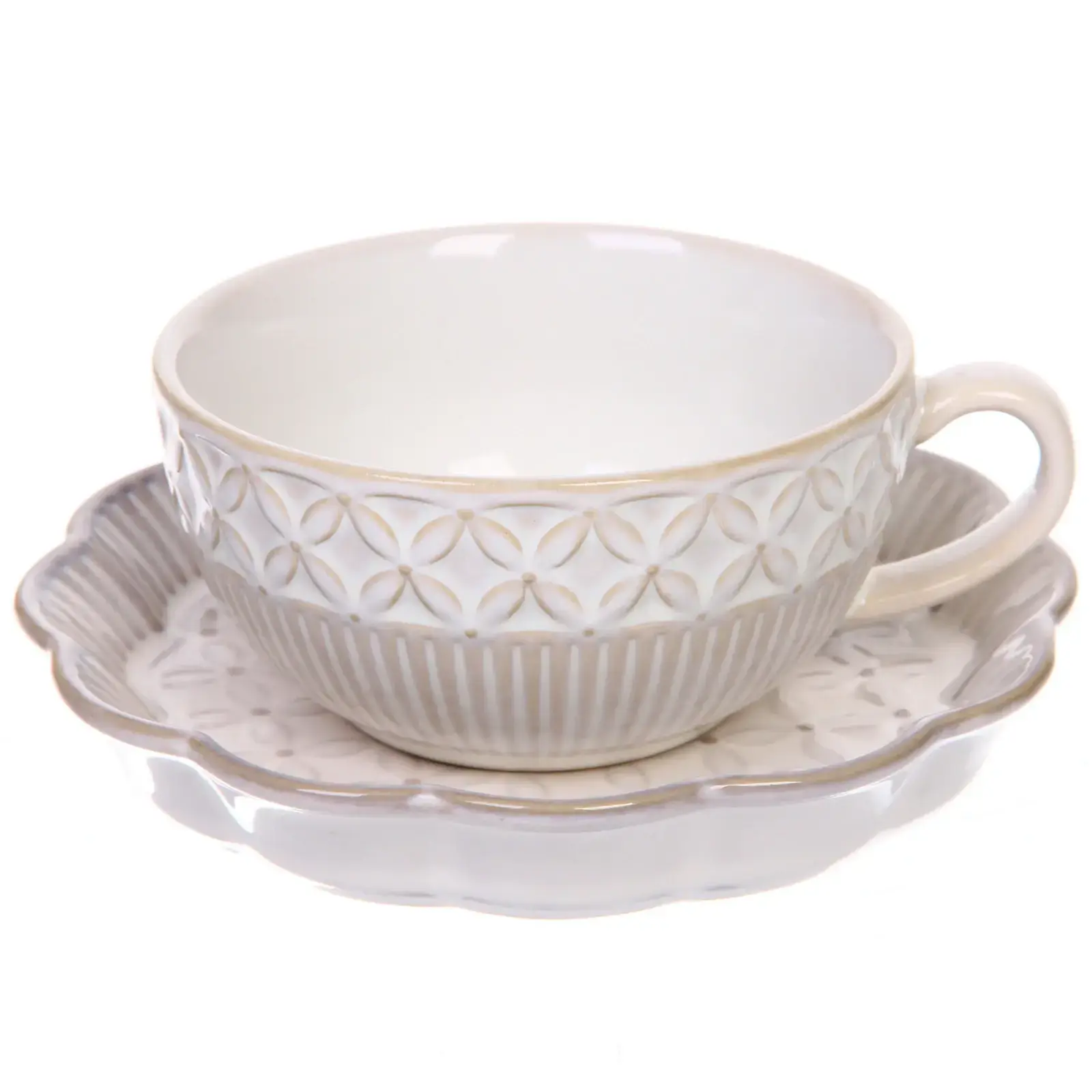 Чайная пара «Верона» керамика 230мл, блюдце и чашка с рельефом