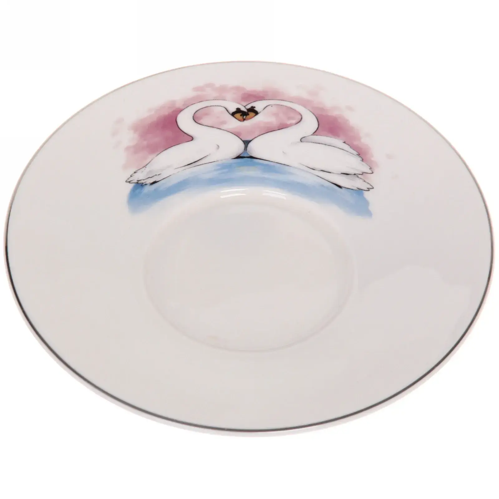 Наслаждайтесь изысканными чаепитиями с уникальным набором, где два лебедя образуют сердце на зеркальной поверхности. Идеальный подарок для создания особой атмосферы за завтраком или во время романтического ужина.
