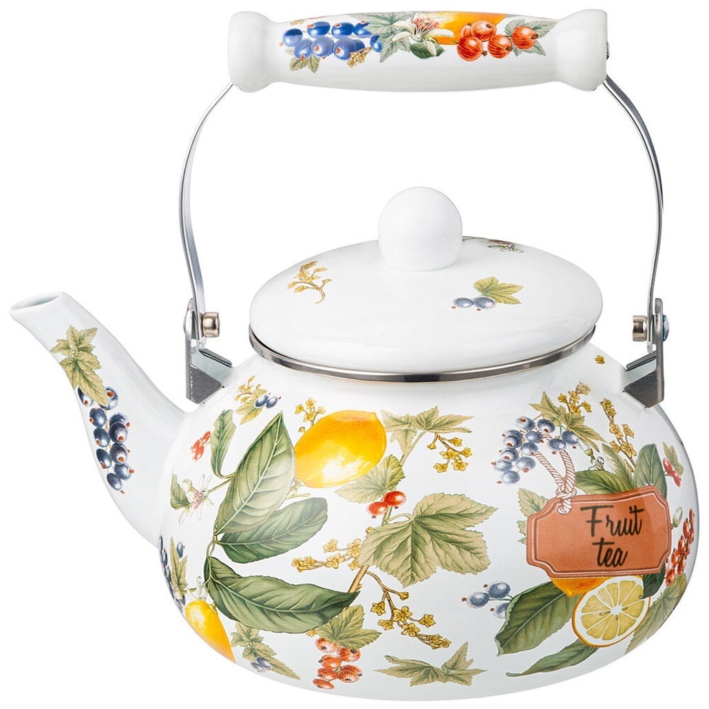 Чайник эмалированный «Фруктовая корзина» 2,5л, сталь, индукционное дно, белый с фруктовым декором
