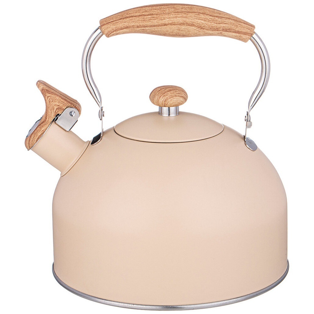 Этот чайник объемом 2,5 литра создан для тех, кто ценит комфорт и надежность во время приготовления напитков. Благодаря качественной нержавеющей стали, он выдержит ежедневное использование и прослужит долго. Удобная ручка с имитацией дерева обеспечивает комфорт при наливании, а свисток позволяет контролировать процесс кипячения. Подходит для всех типов плит, включая индукционные, что делает его универсальным решением для любой кухни.