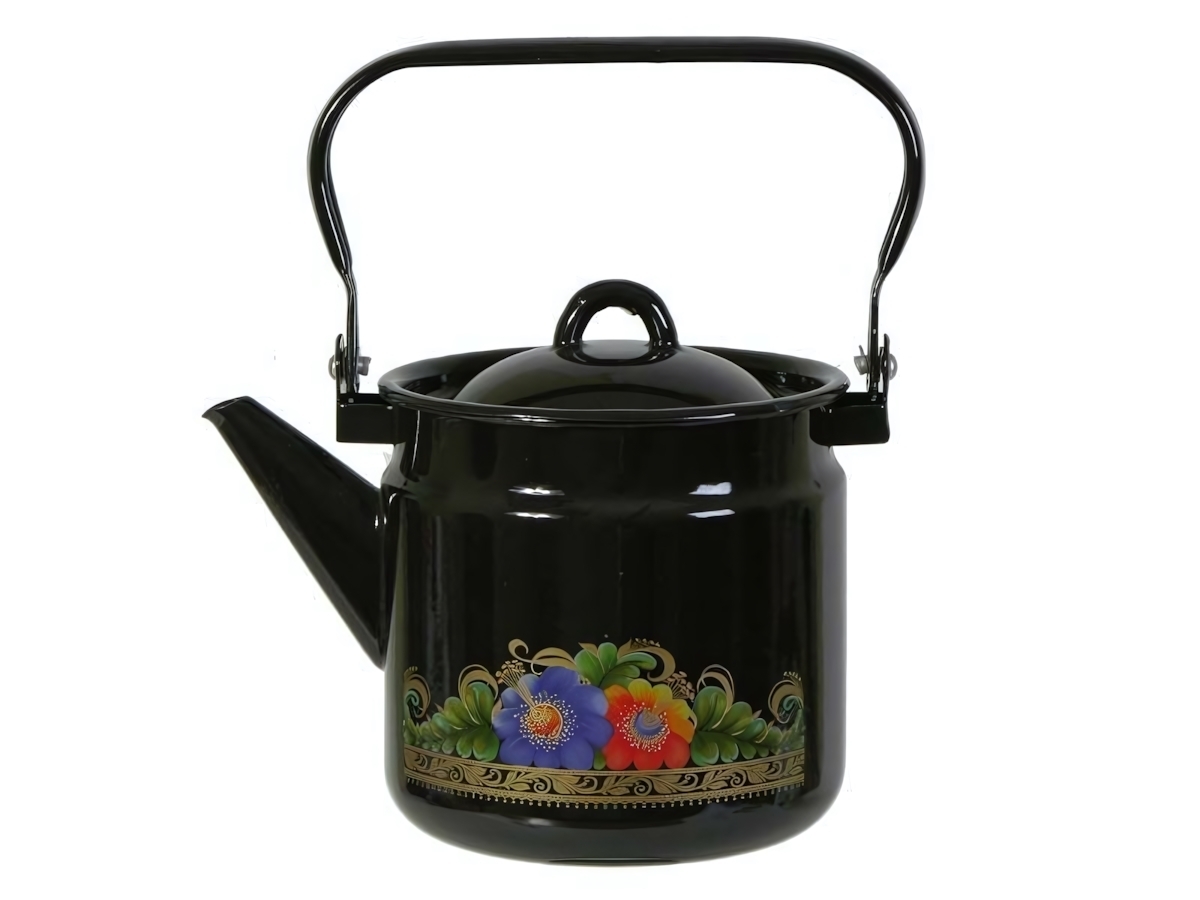 Чайник эмалированный 2л, стальной, с цветочным рисунком, без свистка