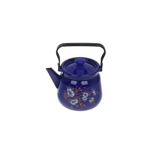 Чайник металлический 3,5 л с цветочным декором, кобальтовый, для плиты