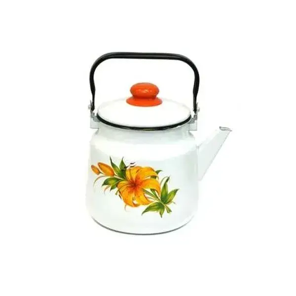 Чайник эмалированный 3,5л с цветочным рисунком, белый/оранжевый, ручка из термостойкого пластика