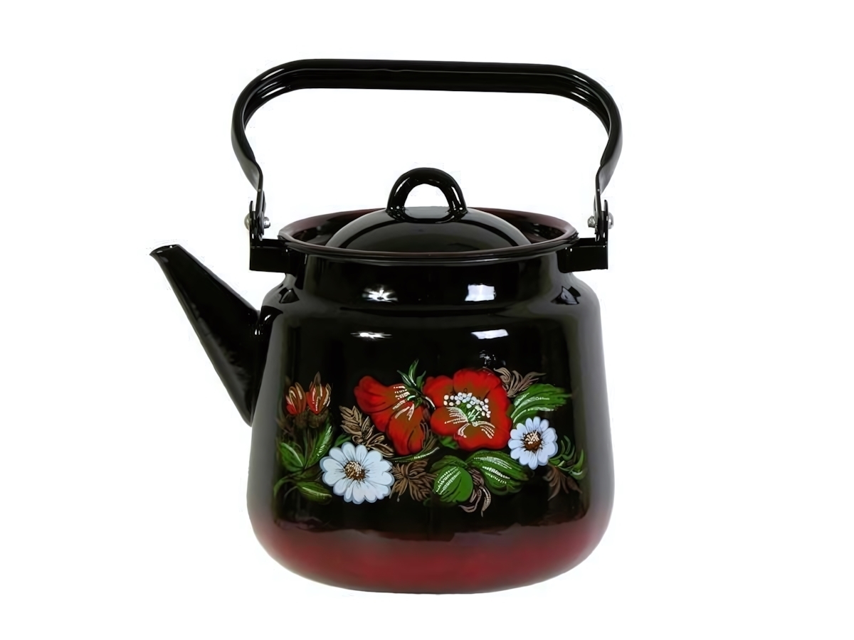 Чайник эмалированный 3,5л, сталь, с цветочным рисунком, без свистка