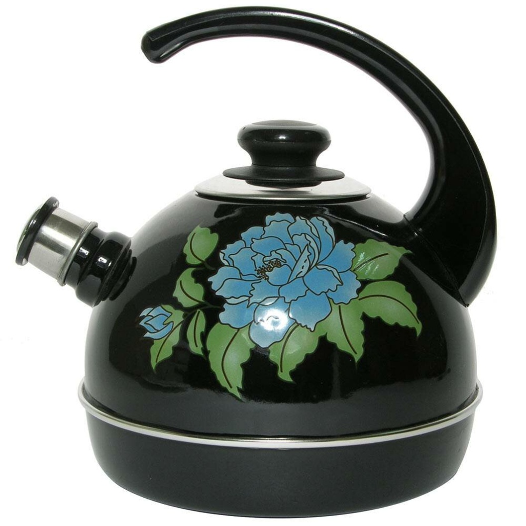 Корпус выполнен из стали и покрыт эмалью, что облегчает уход и помогает сохранять аккуратный внешний вид. Черный цвет гармонично сочетается с цветочным рисунком, а металлические элементы носика и основания крышки добавляют аккуратный завершенный вид. Такой чайник станет надежным помощником на кухне и создаст атмосферу тепла во время каждого чаепития.