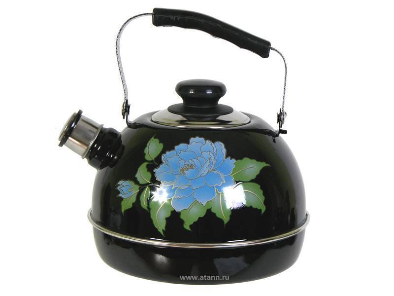 Чайник эмалированный 3,5л со свистком, подвижная ручка, чёрный «Голубая орхидея»