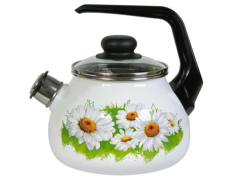 Чайник эмалированный 3л со свистком, серия 'Ромашка', сталь, белый