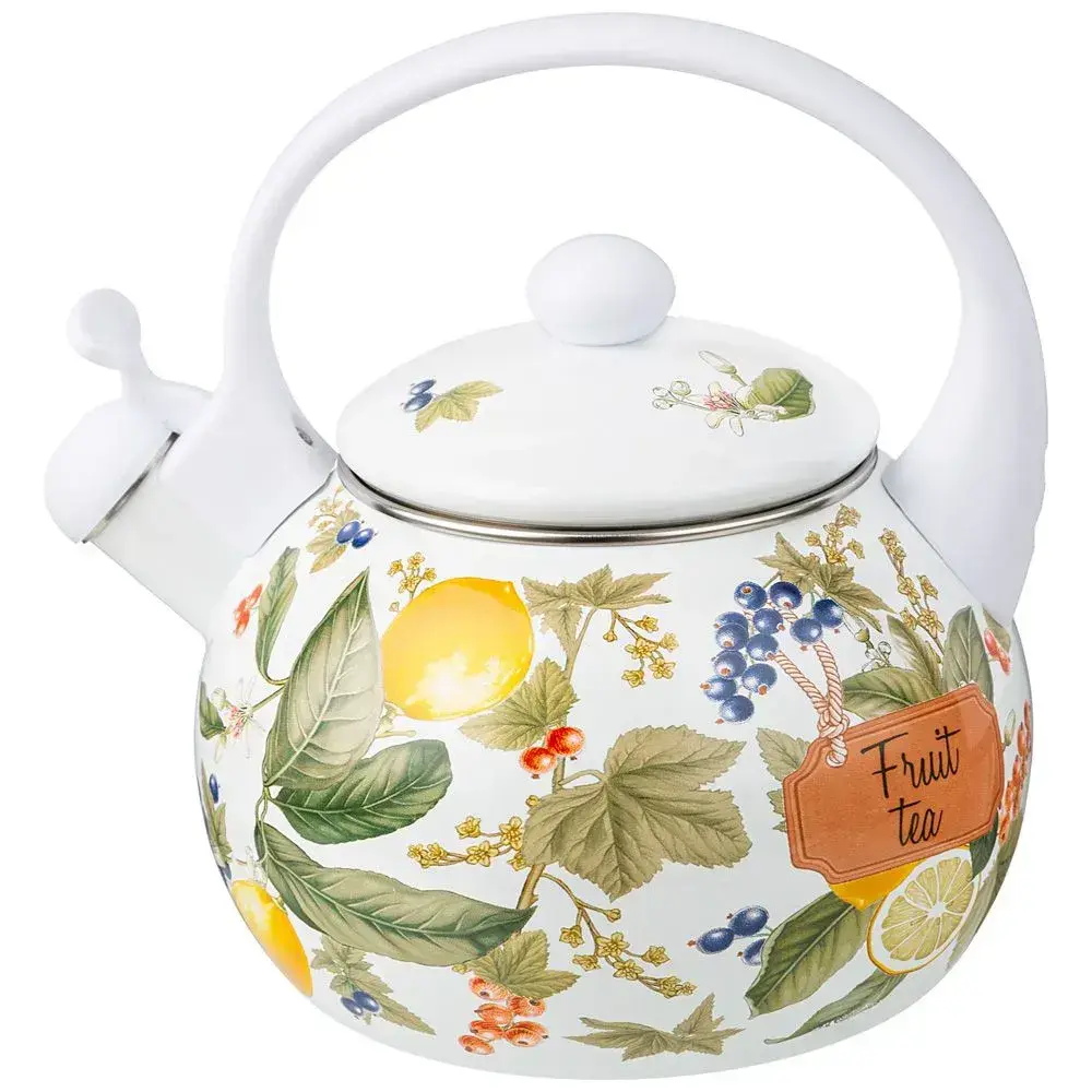 Эмалированный чайник серии «Фруктовая корзина» сочетает функциональность и эстетику. Яркий принт с сочными лимонами и ягодами создаёт настроение утреннего чаепития, а индукционное дно обеспечивает быстрый нагрев на любой плите.
