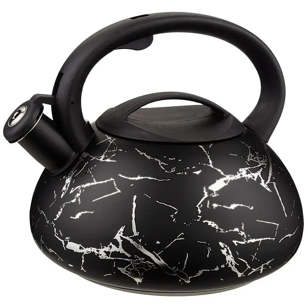 Чайник электрический с мраморным дизайном, 3 л, металл с антипригарным покрытием, черно-белый
