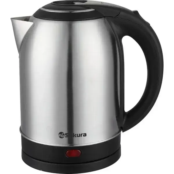 Чайник электрический sakura sa-2121bs, 2.0 л, серебристый/черный, автоматическое отключение, нержавеющая сталь