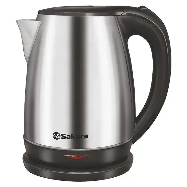 Чайник электрический SAKURA с защитой от перегрева, нержавеющая сталь, черная ручка, 1.8 л