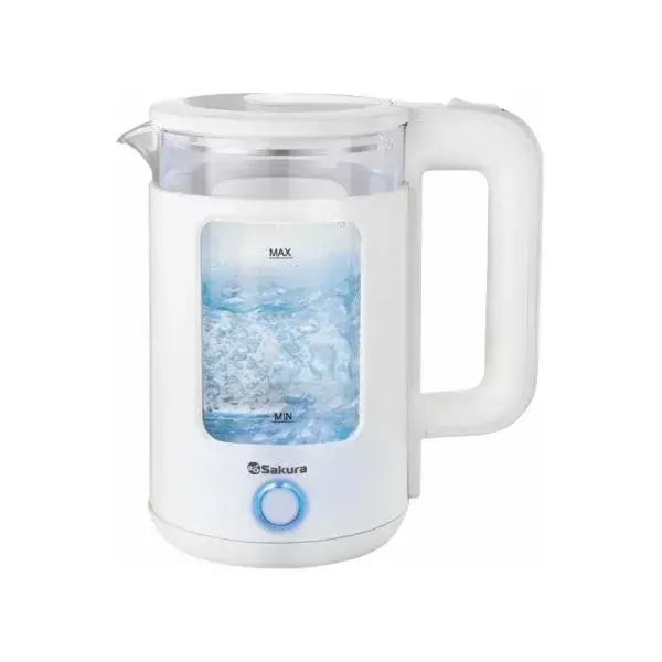Чайник электрический с точечной подсветкой и шкалой уровня, 1.5 л, прозрачное стекло/белый пластик
