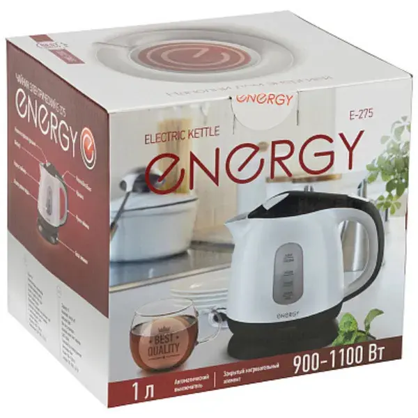 Электрический чайник «ENERGY» E-275 — это идеальный выбор для тех, кто ценит комфорт и качество в каждой детали. С объемом 1 литр, он быстро и эффективно нагревает воду, позволяя вам наслаждаться любимыми напитками в кратчайшие сроки. Благодаря современному дизайну и функциональности, этот чайник станет незаменимым помощником на вашей кухне.