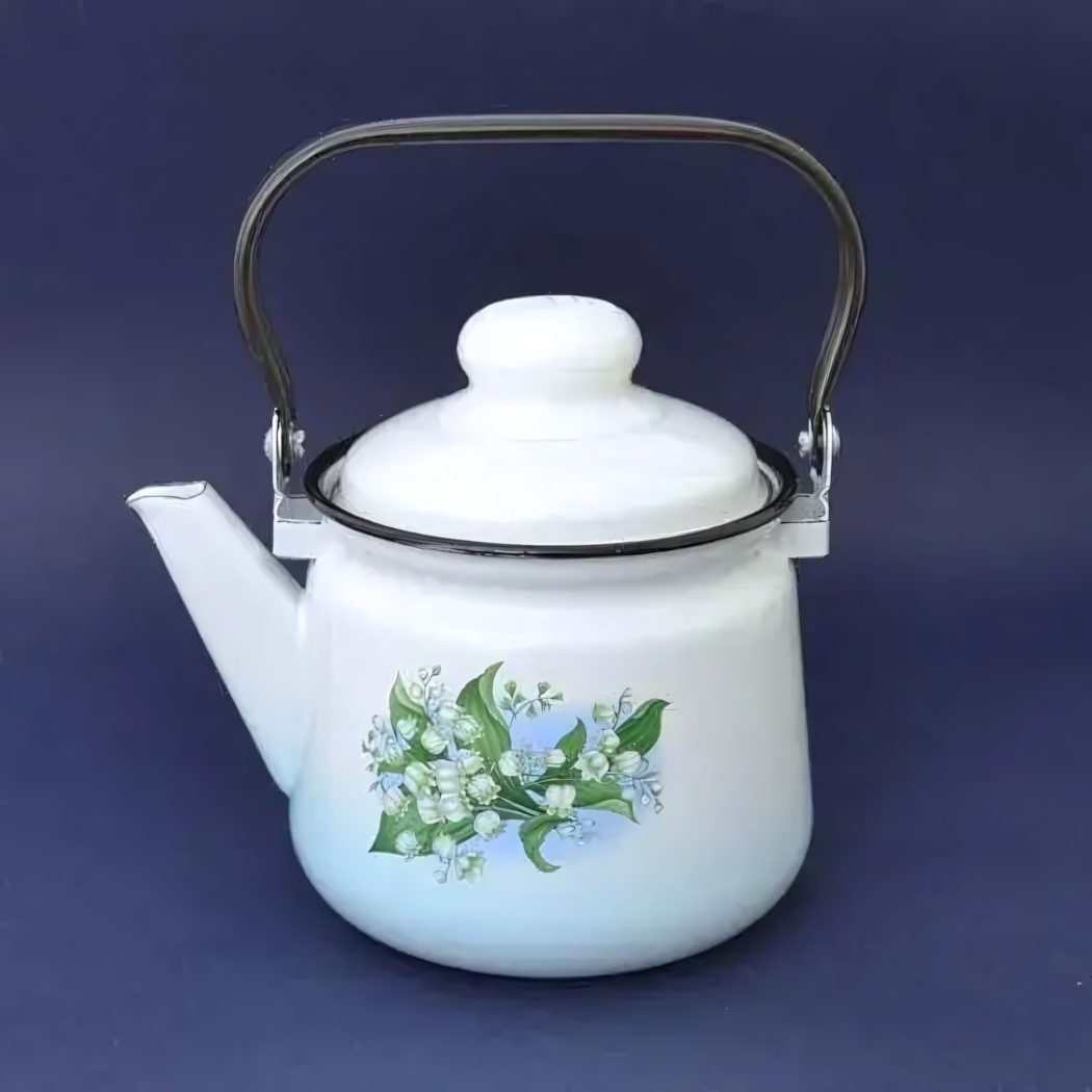 Эмалированный чайник объёмом 1,5 литра создан для тех, кто ценит уют, комфорт и душевные чаепития дома. Оригинальный цветочный рисунок на белом корпусе добавит гармонии вашему интерьeру, а классическая форма и гладкое эмалированное покрытие обеспечивают приятное тактильное ощущение и простоту в уходе.