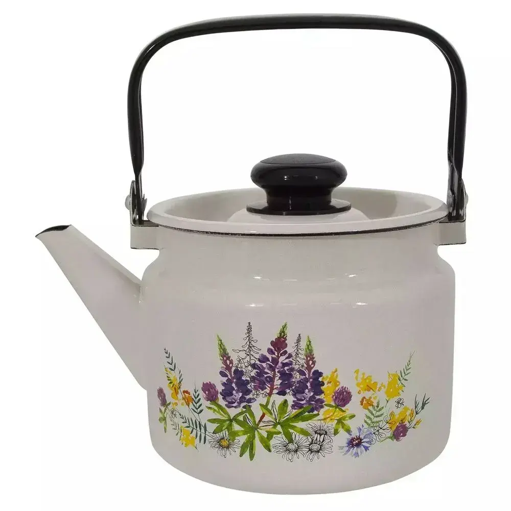 Чайник эмалированный 2,0л с рисунком «Люпины», цвет в ассортименте, металл, пластиковая ручка