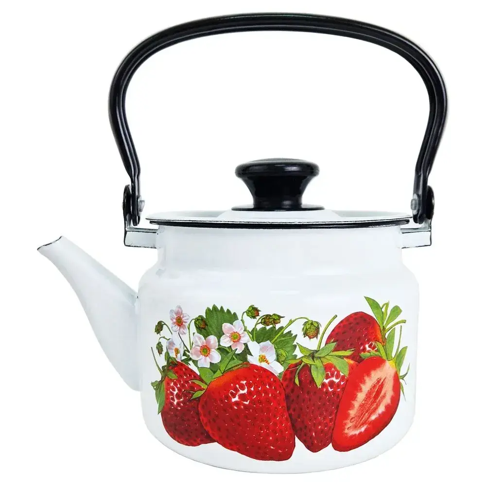 Чайник эмалированный 'Клубничный сад' 2л, цилиндрический, с крышкой, рисунок ягод