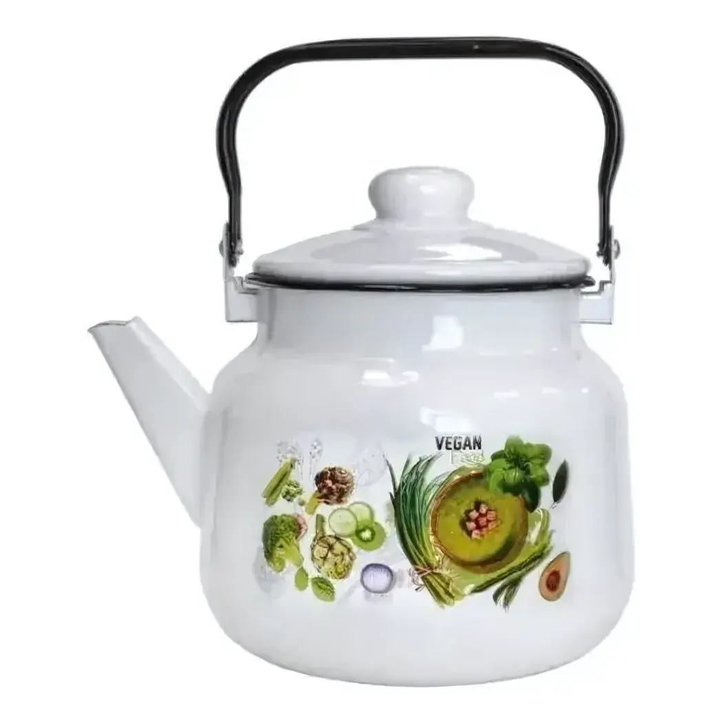 Удобный чайник из эмали объемом 3,5 литра, с ярким украшением