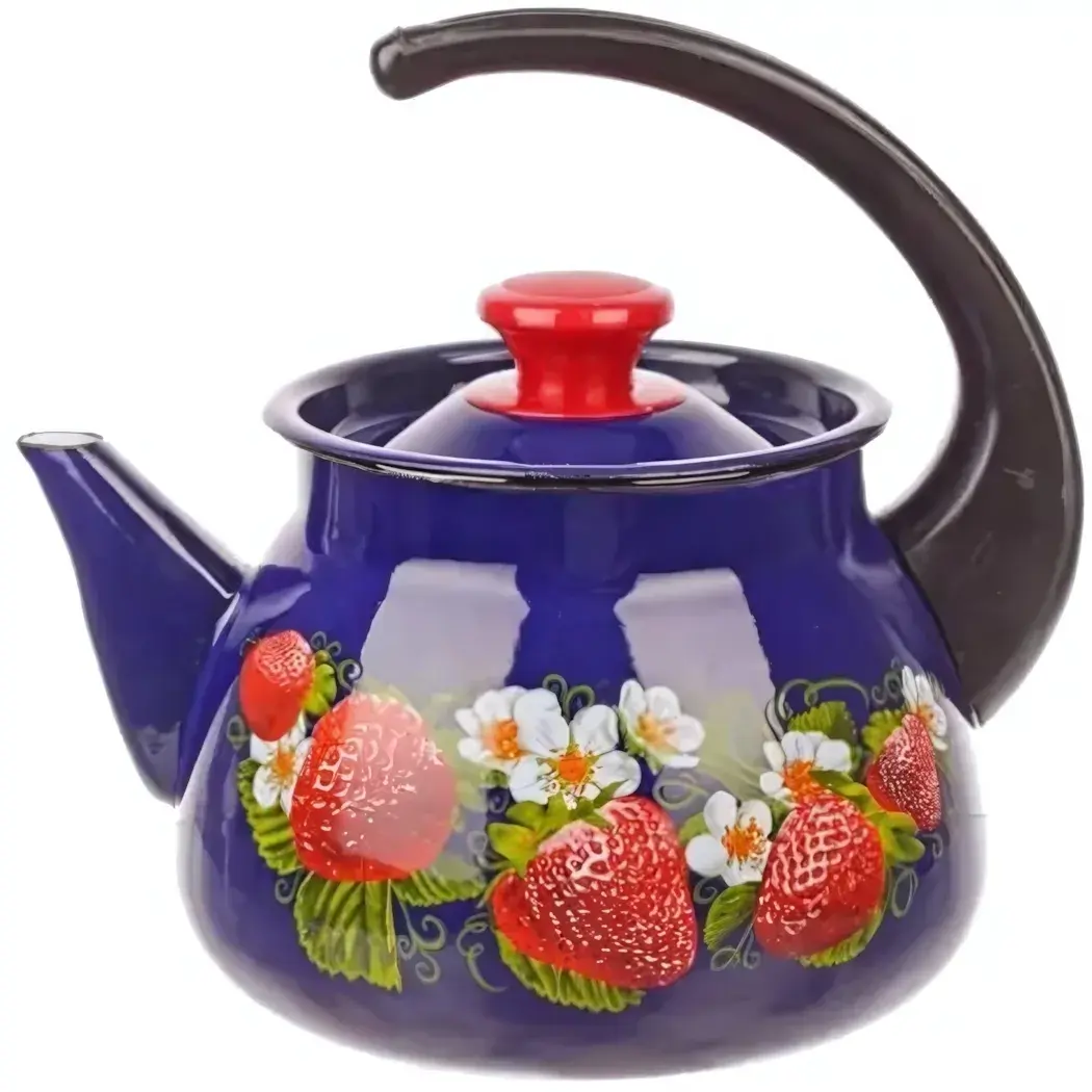 Этот чайник станет не только практичным помощником, но и стильным элементом вашего кухонного интерьера. Его яркий синий цвет с красными деталями и оригинальный рисунок с ягодами клубники и цветами привнесут в вашу кухню атмосферу уюта и радости. Благодаря свистку, вы всегда будете знать, когда вода закипела, что сэкономит ваше время и сделает процесс приготовления чая более комфортным.