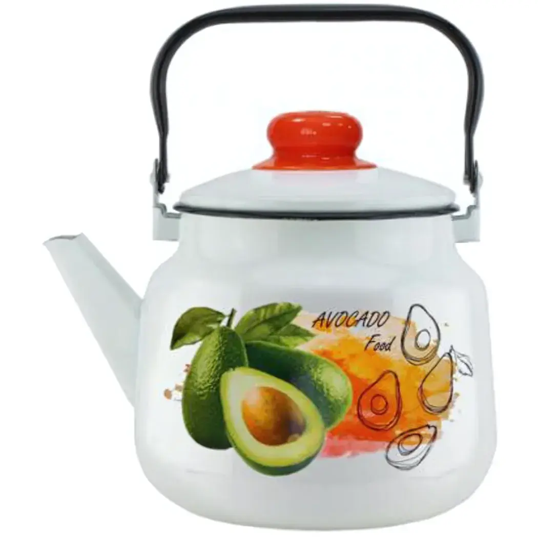 Этот эмалированный чайник объемом 3,5 литра станет не только функциональным помощником, но и стильным акцентом в интерьере. Благодаря яркому рисунку авокадо и продуманной конструкции, он идеально подходит как для повседневного использования, так и для украшения кухни.