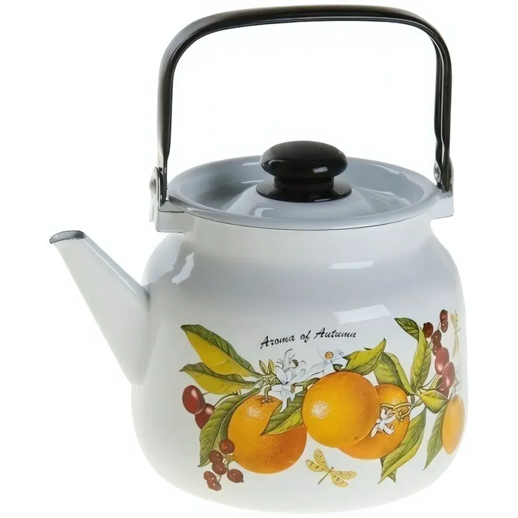 Погрузитесь в атмосферу уюта и тепла с чайником эмалированным 3,5л «Фруктовая фантазия». Этот стильный и практичный аксессуар станет не только незаменимым помощником на вашей кухне, но и ярким элементом декора. Его белоснежный цвет с изображениями апельсинов и зелёных листьев добавит свежести и радости в каждую чашку чая.