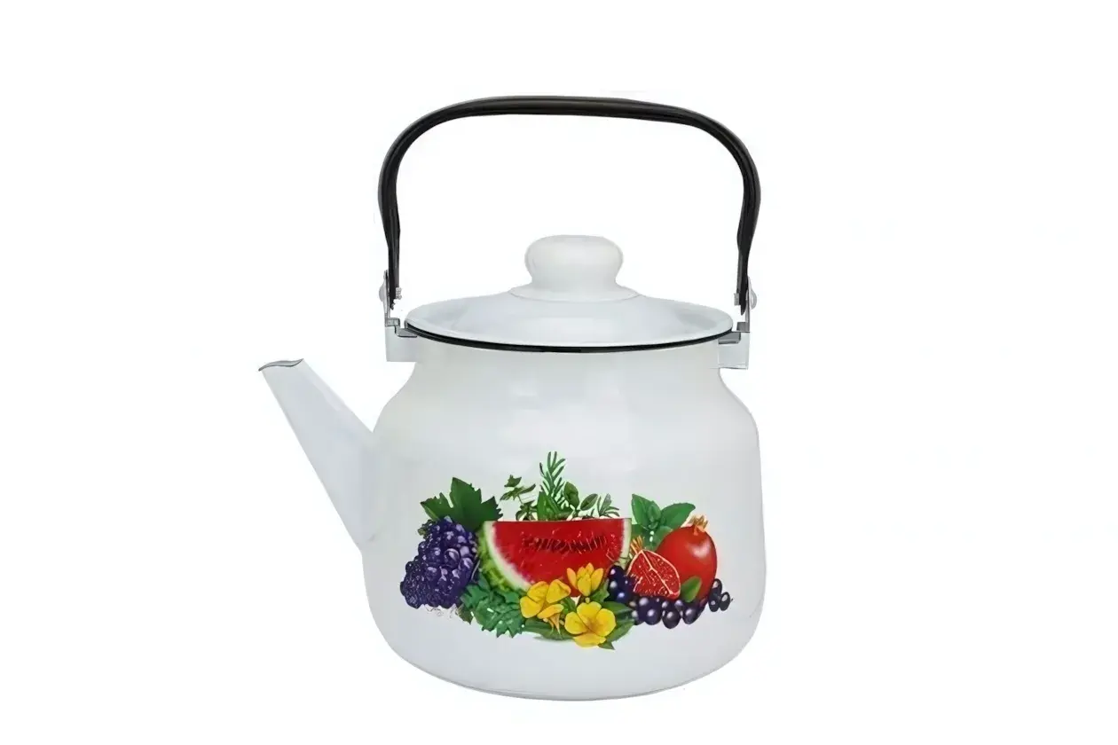 Чайник эмалированный 'Свежесть' 3,5л, с рисунком фруктов, белый/черный