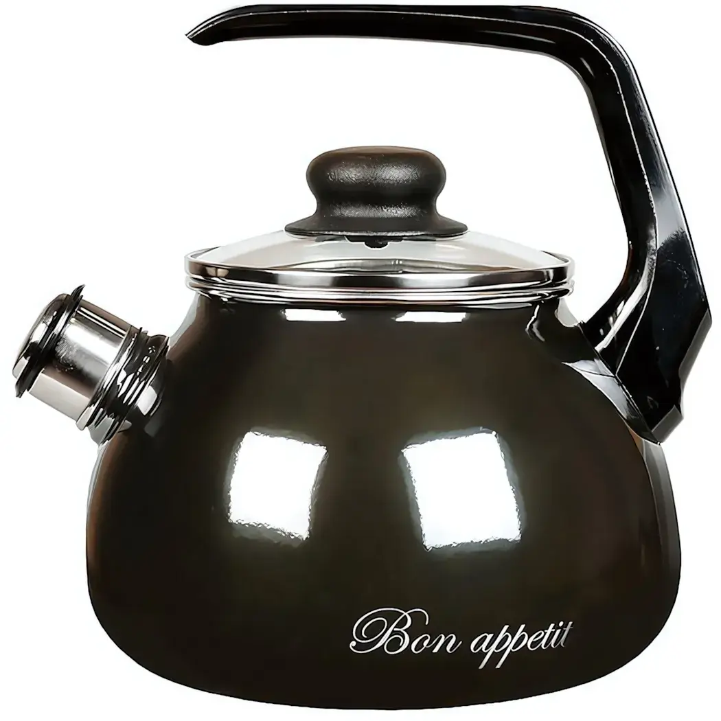 Чайник эмалированный 3л со свистком 'Bon appetit', черный глянец, сталь