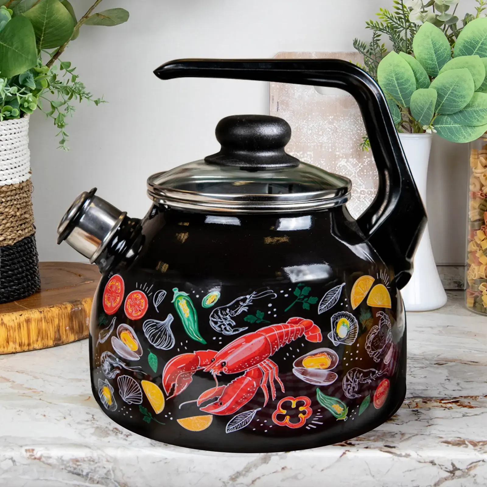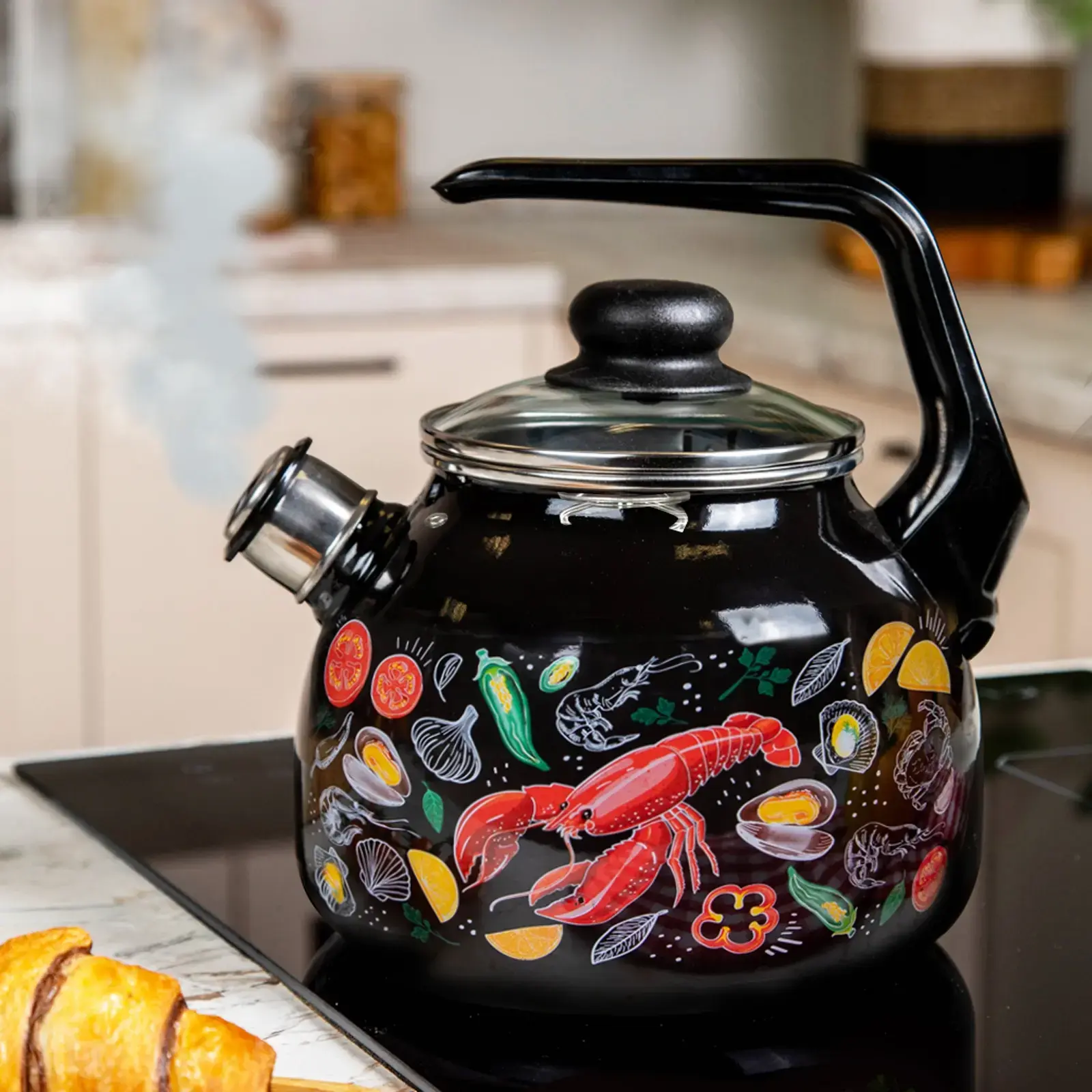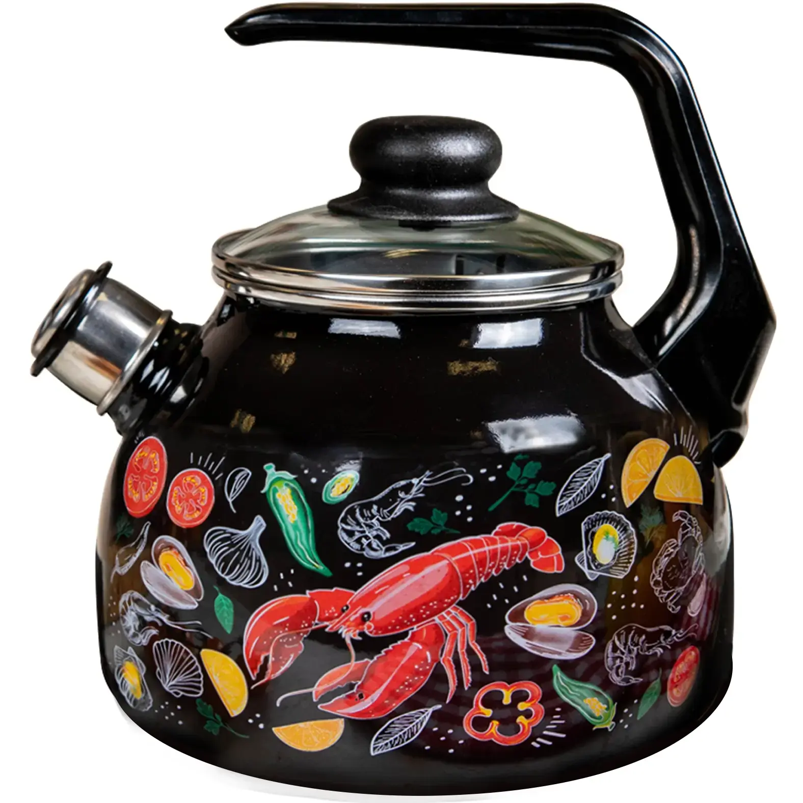 Уникальный декор с изображением лобстера и овощей создает атмосферу морского ресторана на вашей кухне. Гладкая эмалированная поверхность: