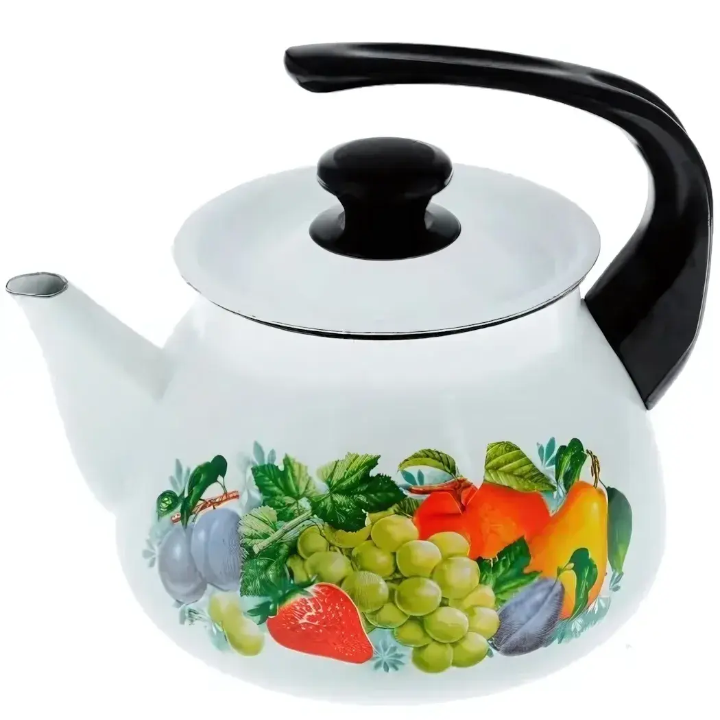Чайник эмалированный 3л со свистком, белый с фруктовым декором