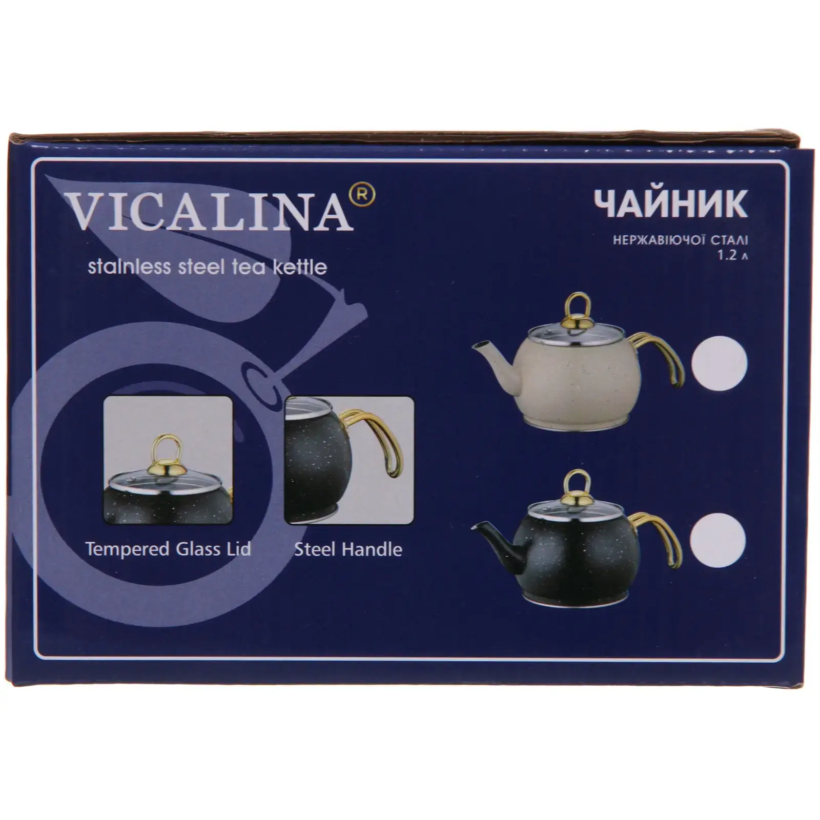 Чайник имеет размеры, которые позволяют удобно хранить его на кухне. Он выполнен из нержавеющей стали и пластика, что делает его легким и прочным. Не упустите возможность сделать вашу кухню более стильной и функциональной с чайником «Vicalina»!