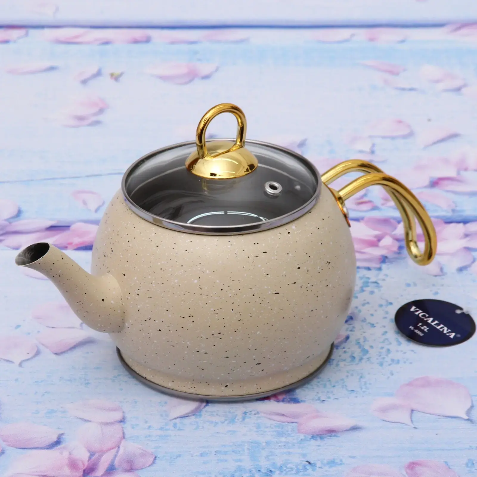Чайник «Vicalina» идеально подходит для приготовления чая, кофе или других горячих напитков. Его округлая форма и длинный носик обеспечивают удобное наливание, а прозрачная крышка с золотистым ободком позволяет контролировать процесс кипения. Благодаря качественным материалам, чайник легко чистится и долго сохраняет свой первоначальный вид.