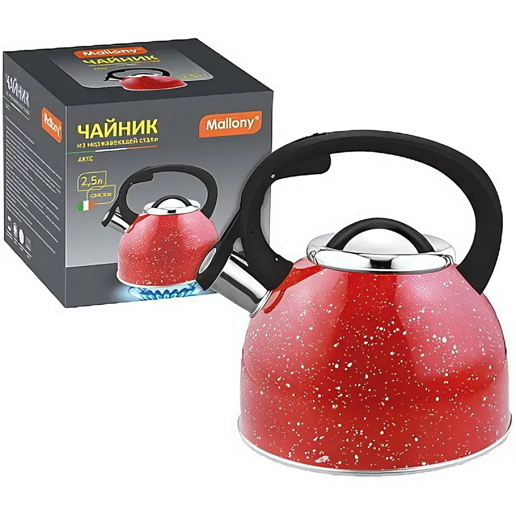 Погрузитесь в мир комфорта и стиля с чайником из нержавеющей стали «Arte». Этот чайник не только привлекает внимание своим ярким красным цветом с белыми точками, но и обеспечивает надежность и долговечность благодаря высококачественному материалу. Объем 2,5 литра позволяет заваривать достаточное количество чая для всей семьи или компании друзей, а свисток на крышке подскажет, когда вода закипела.