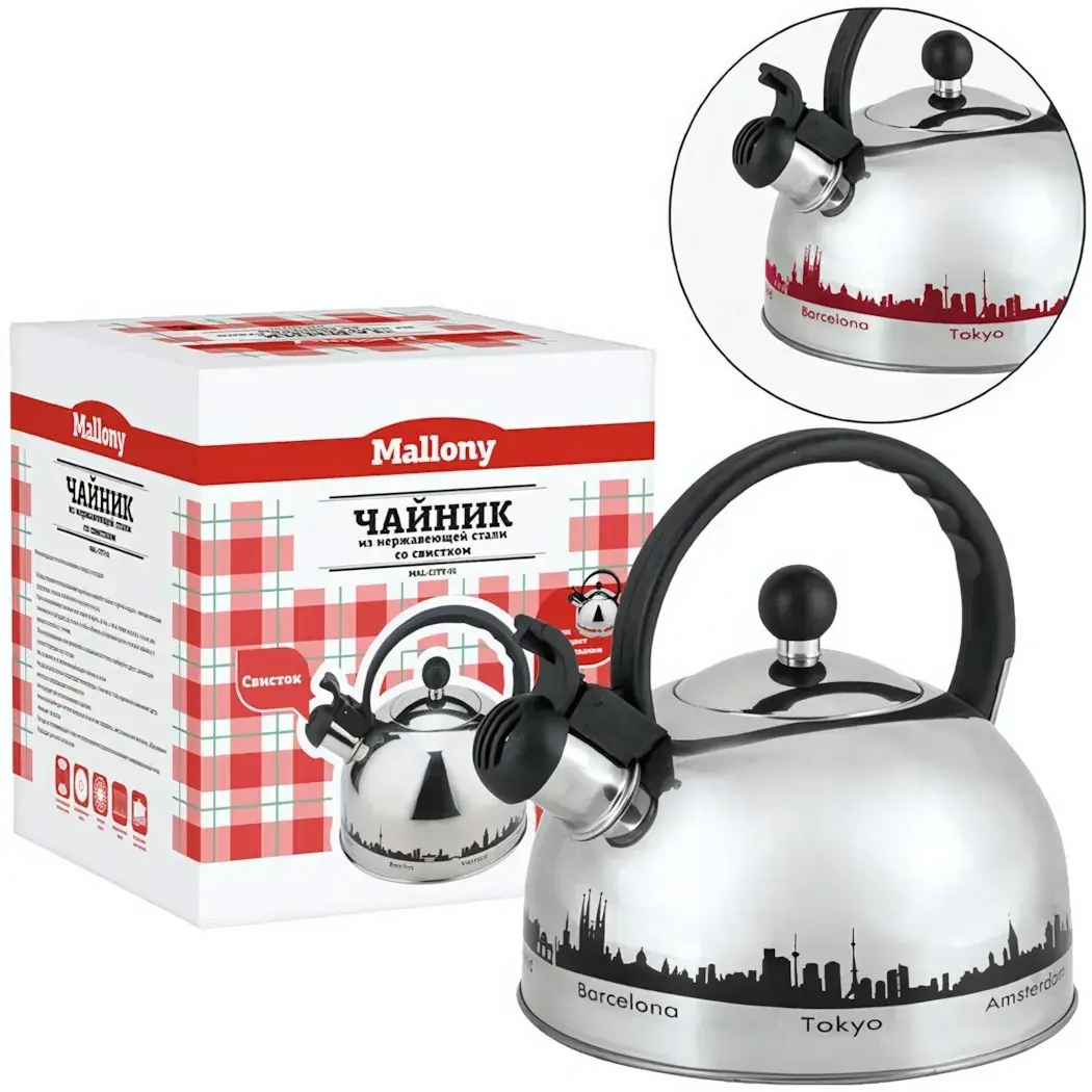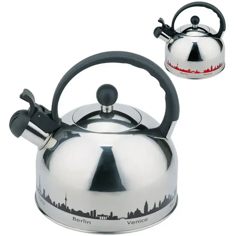 Чайник из нержавеющей стали 2,8 л со свистком, термостойкая ручка, дизайн «MAL-CITY-01»