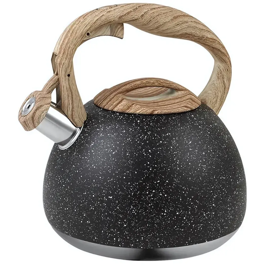 Этот чайник — не просто кухонный аксессуар, а стильный элемент вашего интерьера. Его черный гранитный цвет с белыми вкраплениями придаст вашей кухне элегантность и уют. Благодаря индукционному дну, он быстро нагревает воду, что экономит ваше время и усилия. Чайник оснащен свистком, который оповестит вас о готовности воды, позволяя вам заниматься другими делами.