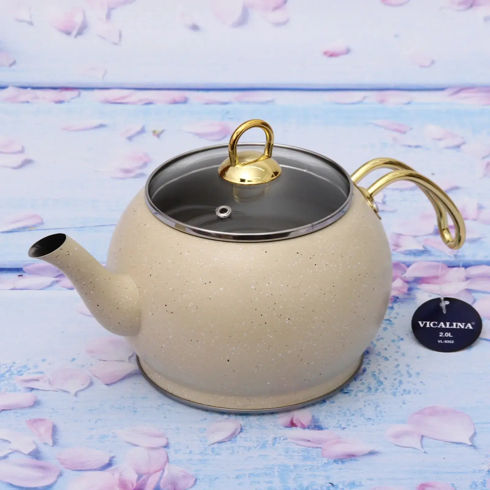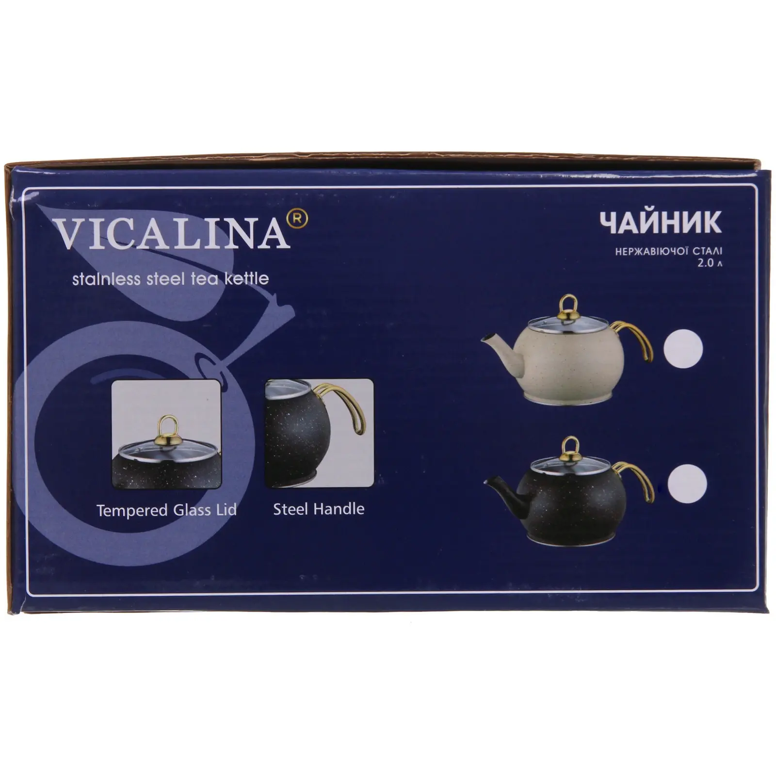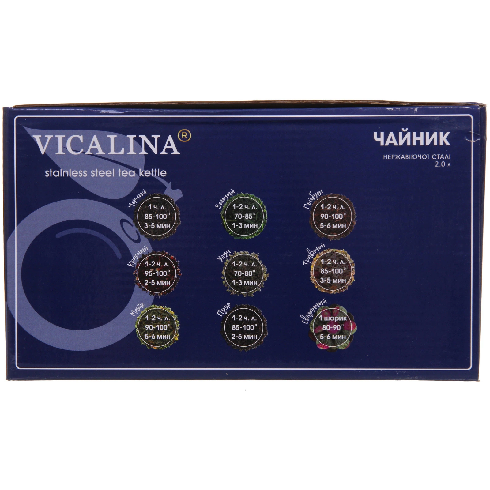Чайник имеет стандартный объем 2 литра, что делает его идеальным для повседневного использования. Его размеры и форма обеспечивают стабильность на плите, а также позволяют легко наливать воду без проливания. Чайник подходит для всех типов плит, включая газовые, электрические и индукционные. Выбирая чайник «Vicalina», вы получаете не только качественный продукт, но и стильный аксессуар для вашей кухни.