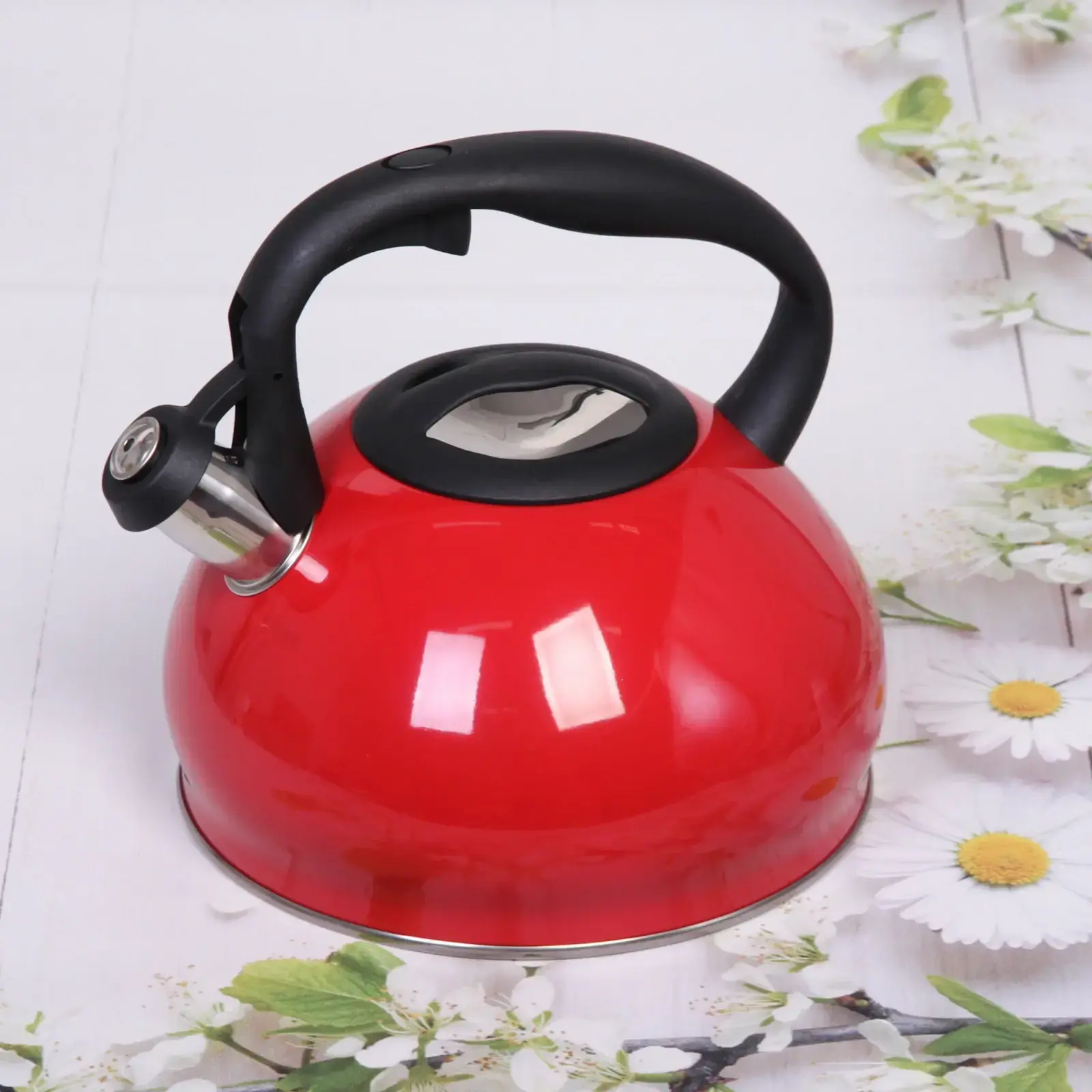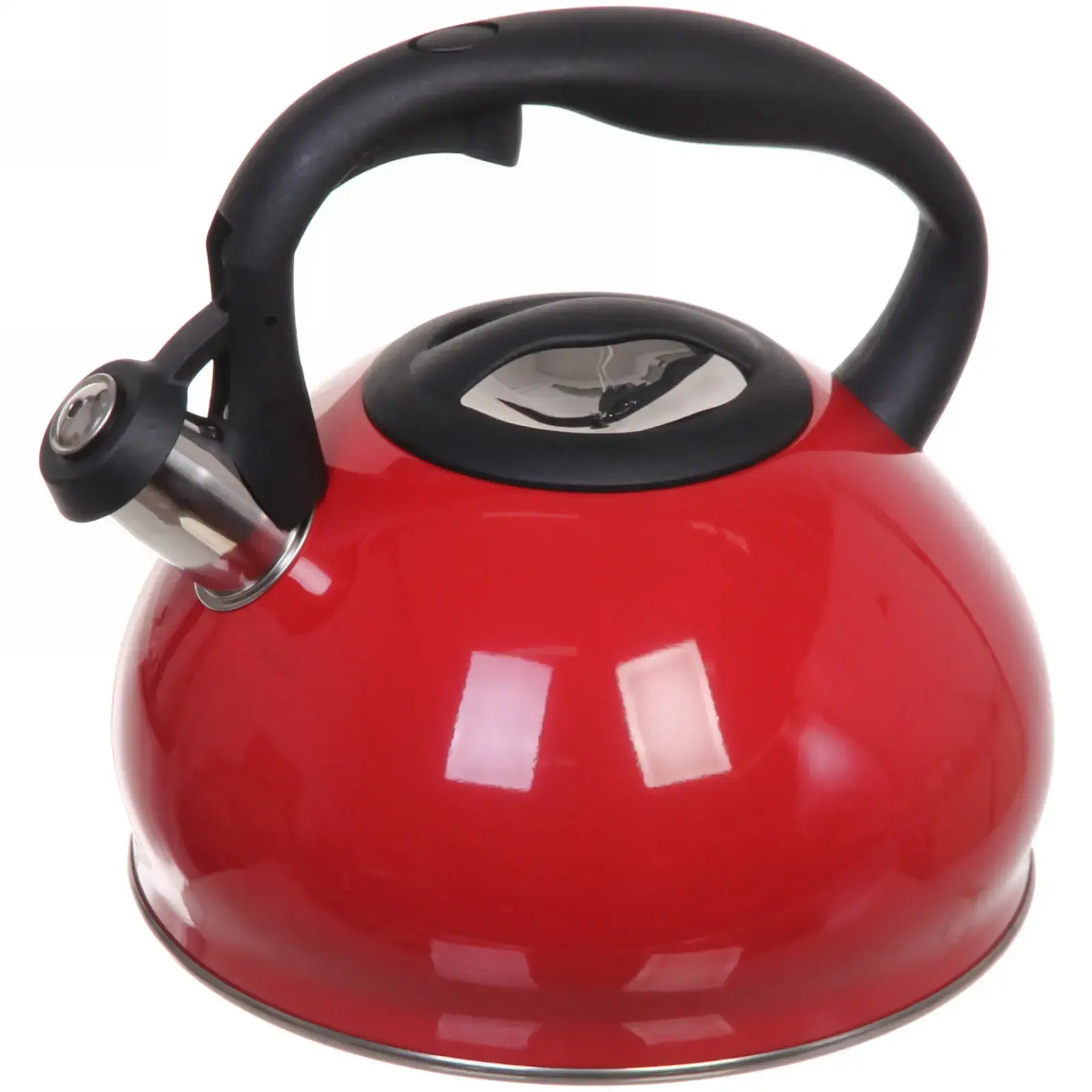 Чайник со свистком 3,2 л, нерж. сталь, глянцевая поверхность, прозрачное окошко, красный