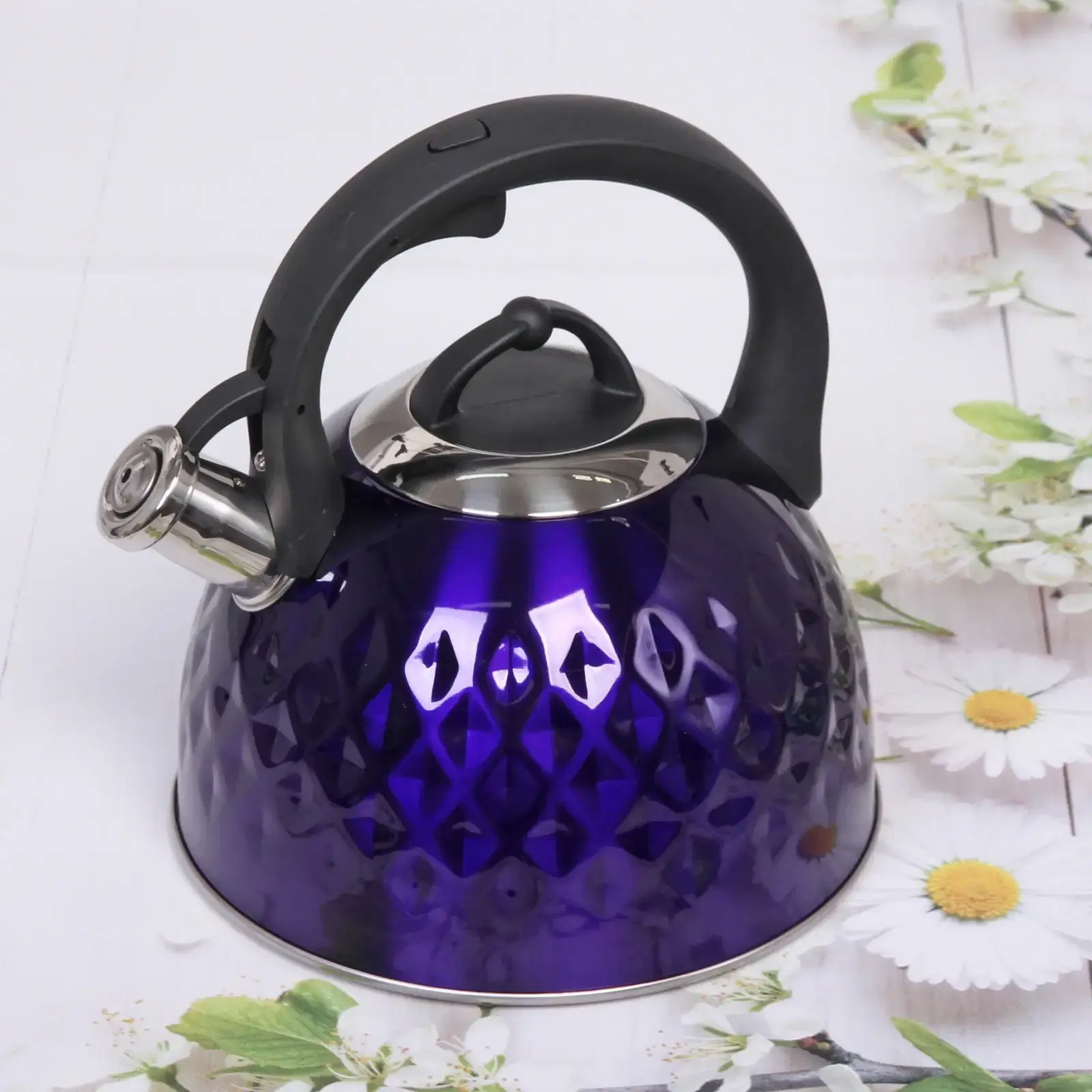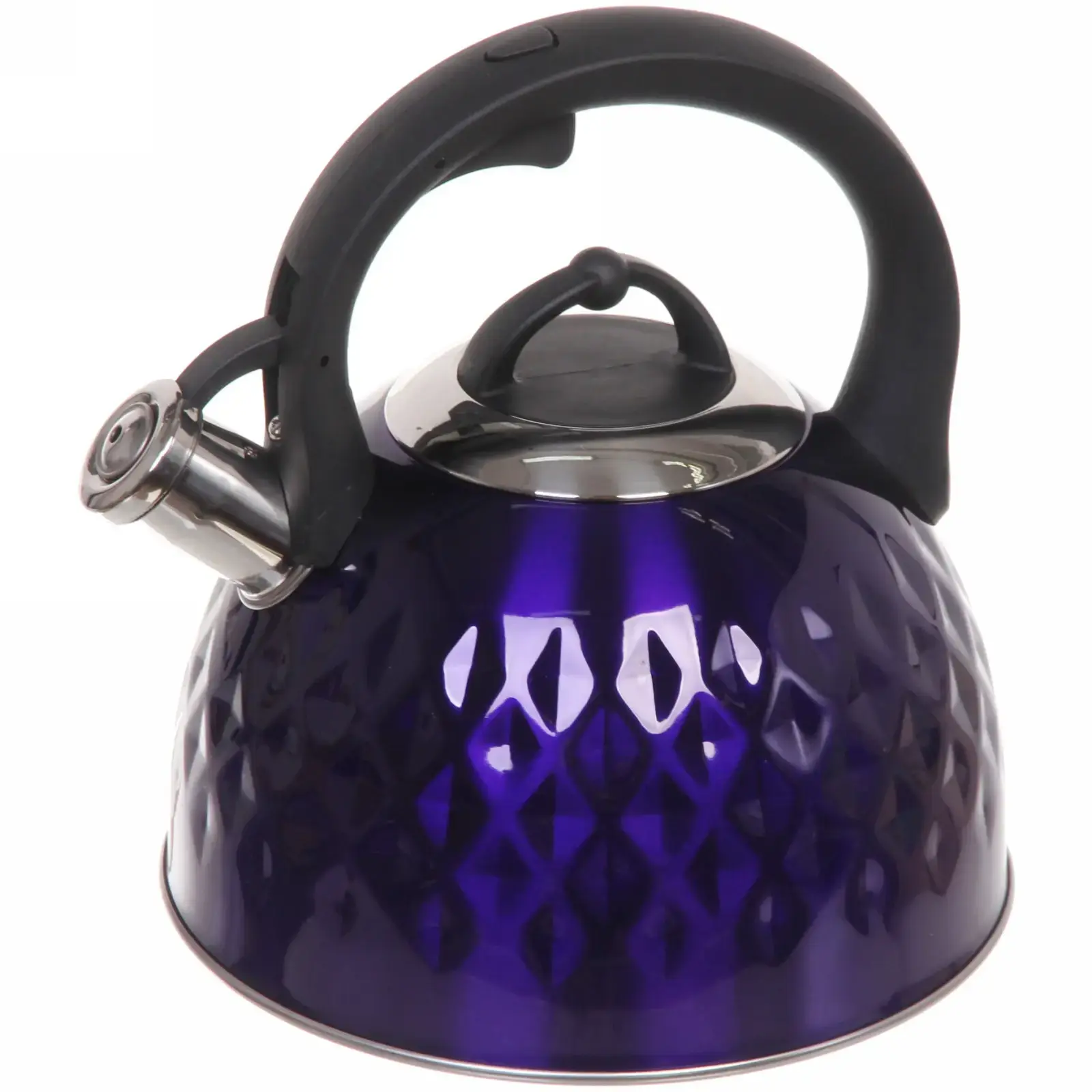 Элегантный чайник из нержавеющей стали с ярким фиолетовым дизайном станет изюминкой вашей кухни. Свисток с точным срабатыванием вовремя оповестит о закипании, а продуманная конструкция обеспечит безопасность и удобство использования.
