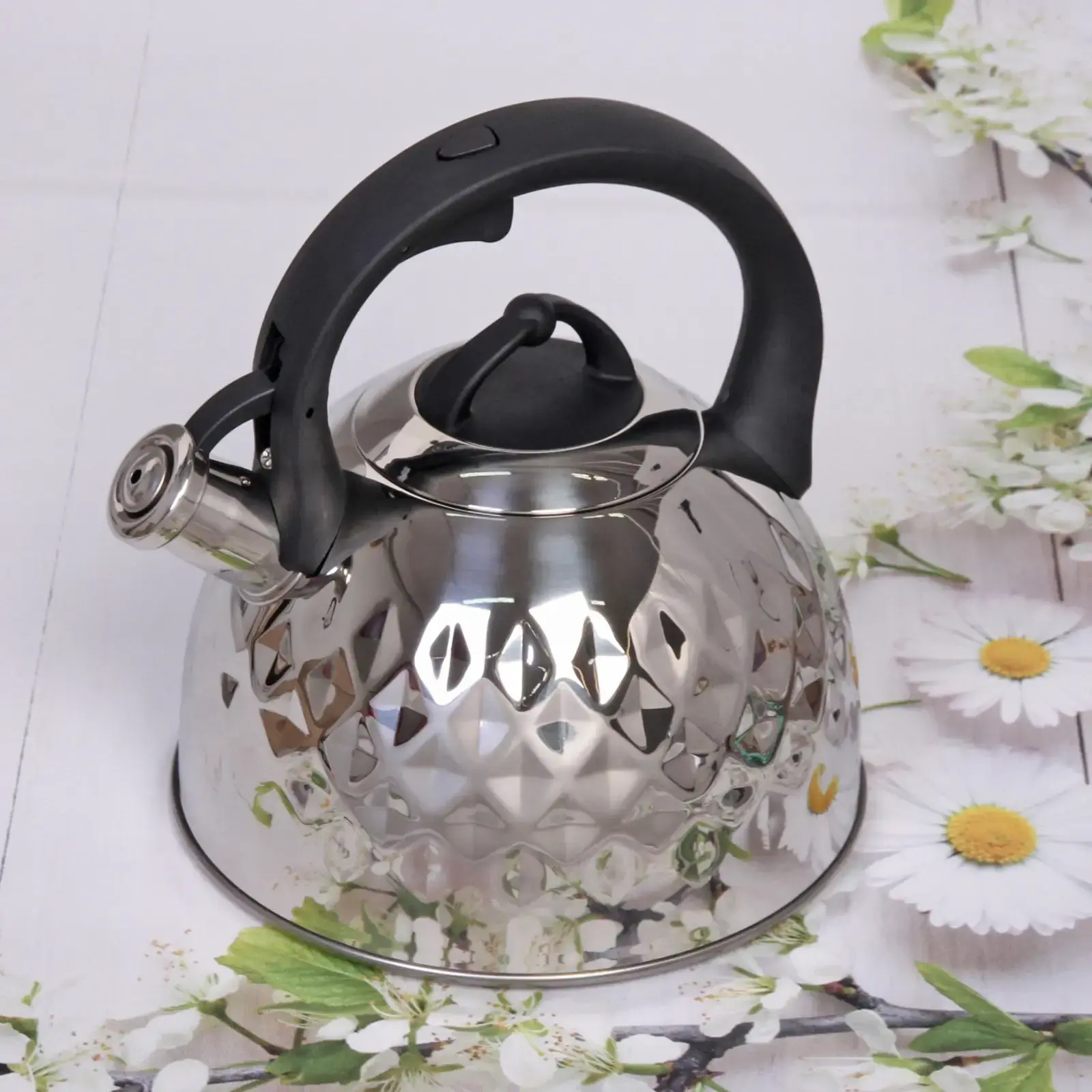 Этот стильный и практичный чайник из нержавеющей стали объемом 3,2 литра станет незаменимым атрибутом вашей кухни. Его зеркальная поверхность не только привлекает внимание, но и легко очищается, что обеспечивает долговечность и сохранение первоначального вида. Чайник оснащен свистком, который уведомит вас о закипании воды, позволяя вам заниматься другими делами, не беспокоясь о том, что вода может выкипеть.