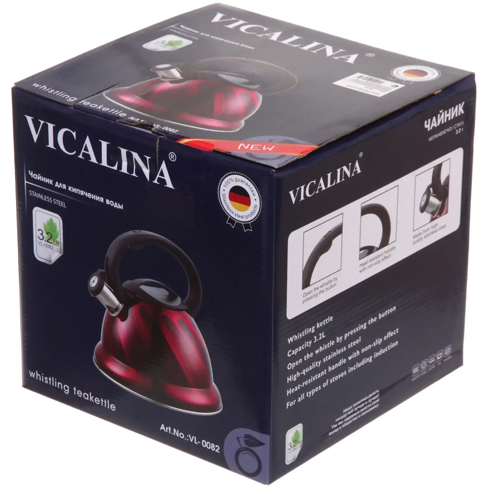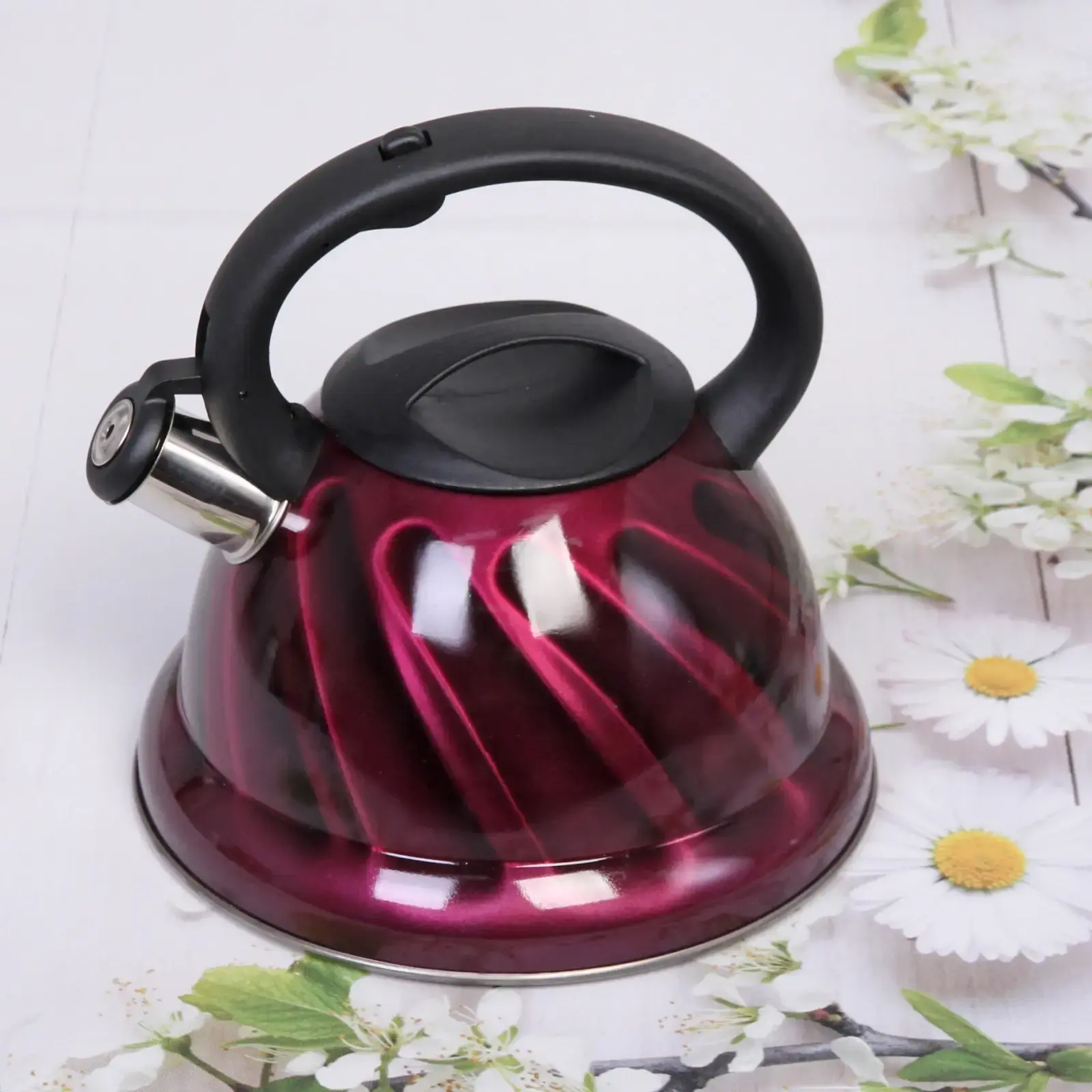 Металлический корпус с глянцевым покрытием малинового оттенка станет ярким акцентом на кухне, а удобный свисток оповестит о готовности воды. Объём 3,2 литра идеален для семьи из 3-4 человек.