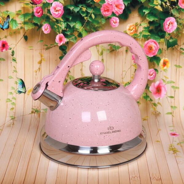 Чайник оснащен свистком, который оповестит вас о закипании воды, что позволяет вам заниматься другими делами, не беспокоясь о том, что вода может выкипеть. Он идеально подходит для использования на всех типах плит, включая газовые, электрические и индукционные. Благодаря округлой форме и удобной ручке, чайник легко наливать и переносить.