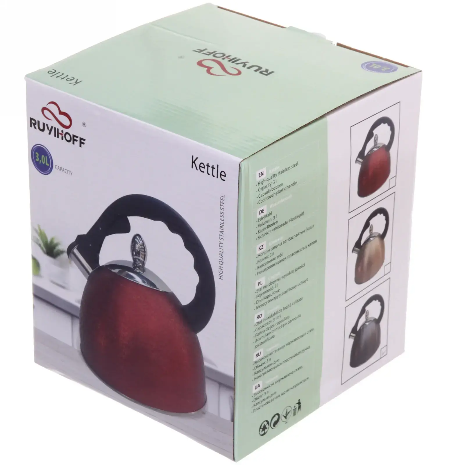 Многослойное дно из нержавеющей стали обеспечивает быстрый нагрев и равномерное распределение тепла. Чайник совместим со всеми типами плит: газовыми, электрическими, стеклокерамическими и индукционными (при использовании адаптера).