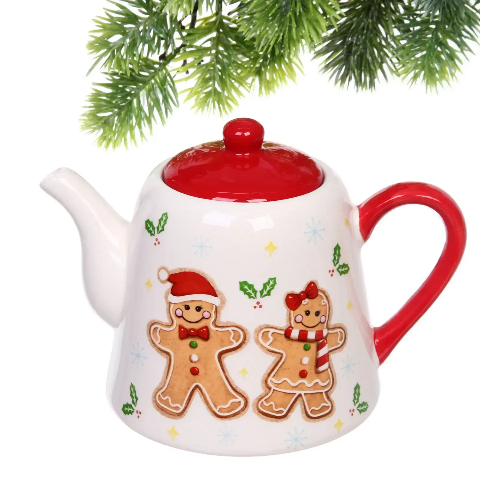 Этот керамический заварочный чайник станет не только практичным, но и стильным элементом вашего интерьера. Его уникальный дизайн с изображением пряничных человечков создаст атмосферу уюта и праздника, идеально подходя для новогодних встреч и семейных чаепитий.