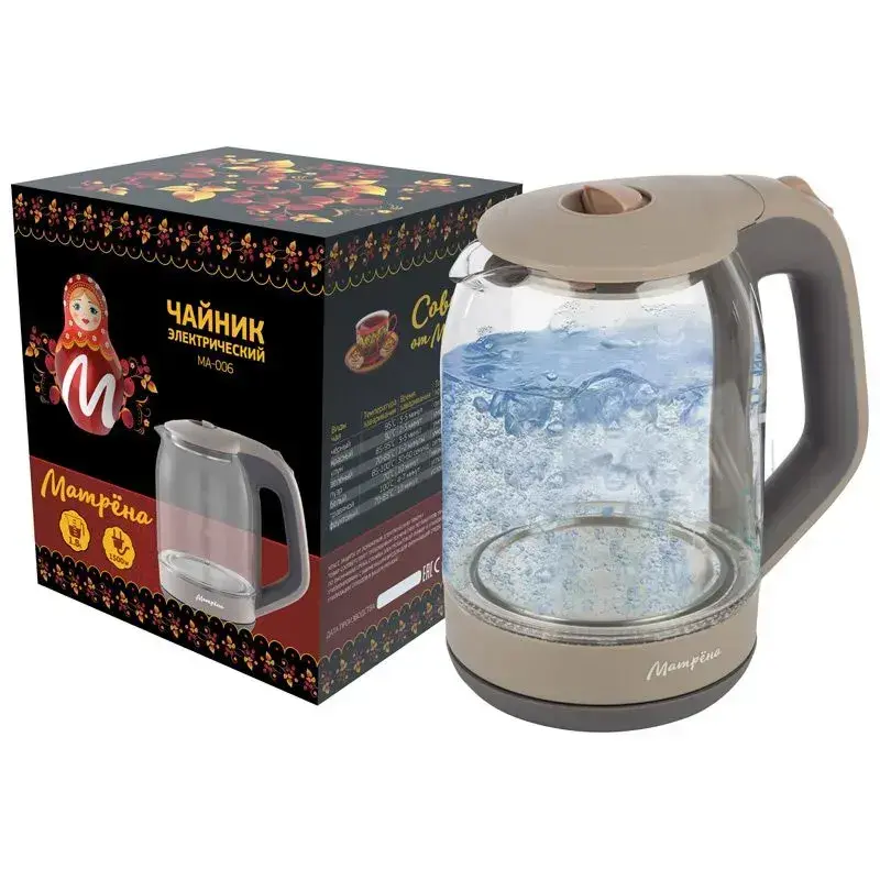 Электрический чайник «Матрёна MA-006» сочетает элегантный дизайн и функциональность. Стеклянный корпус с бежевыми элементами добавит уюта вашей кухне, а встроенная защита от перегрева обеспечит безопасность использования.