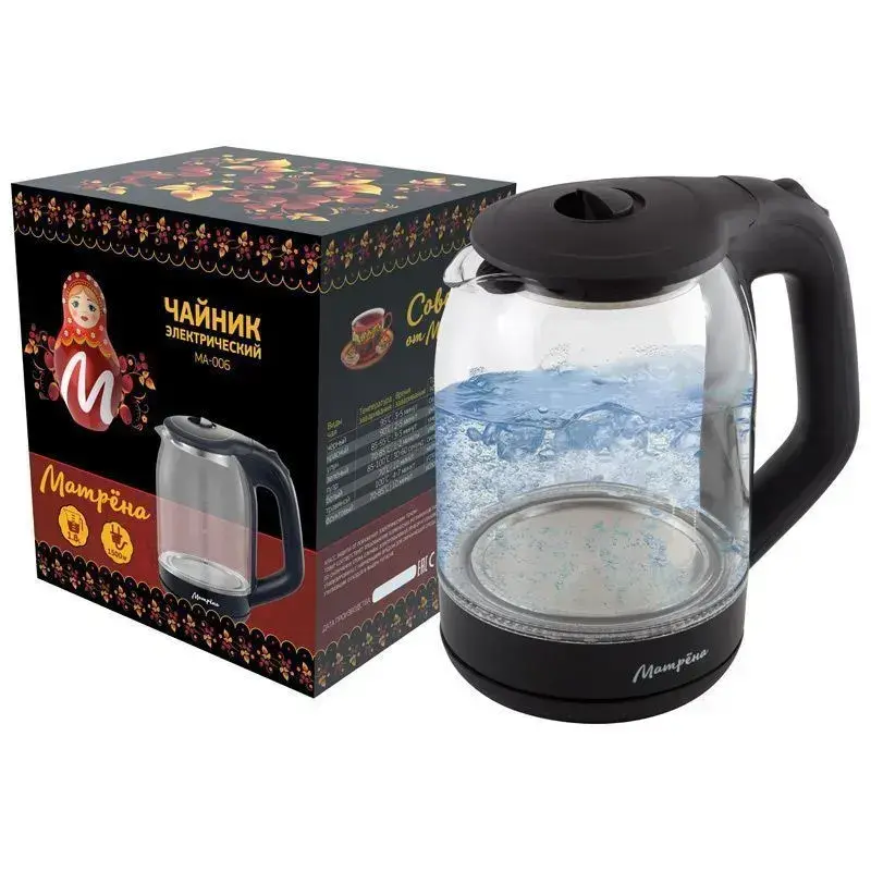 Электрический чайник «Матрёна» MA-006, 1,8 л, стеклянный корпус, черная ручка