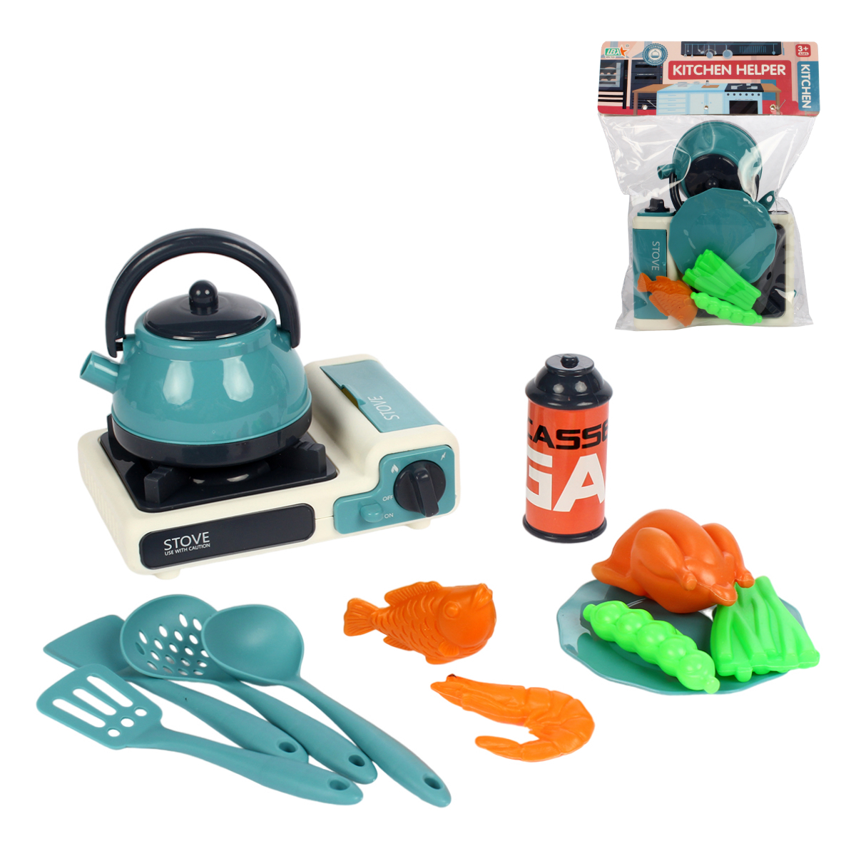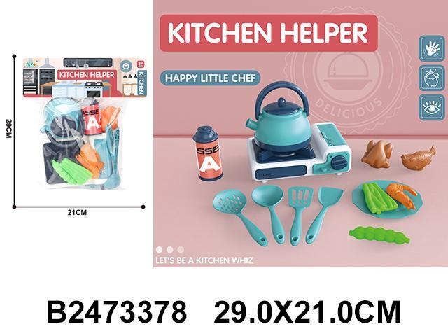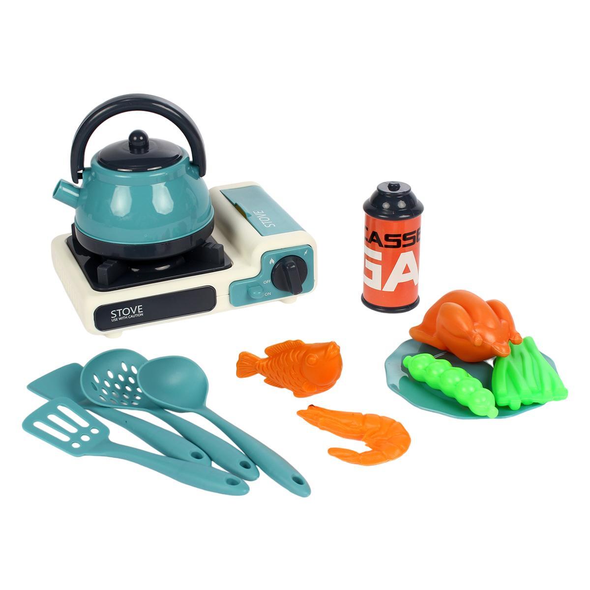 Игрушечный набор предназначен для детей старше 3 лет и идеально подходит для игры в кулинарные процессы. Ребенок сможет самостоятельно готовить, используя плиту с чайником и разнообразные кухонные принадлежности. Набор включает в себя: