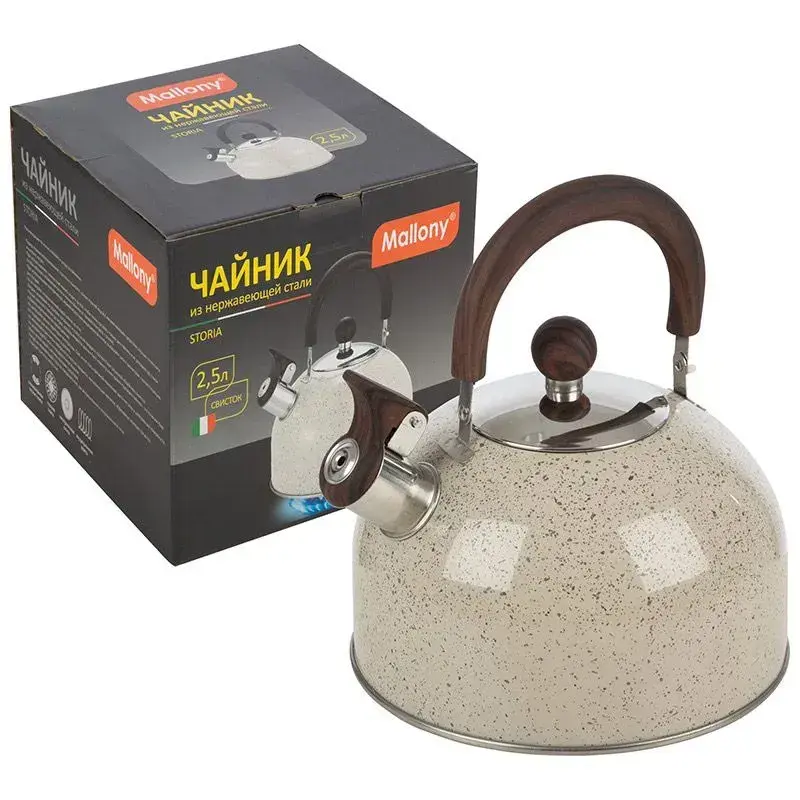 Чайник STORIA 2,5 л из нержавеющей стали со свистком, ручка под дерево, цвет в ассортименте
